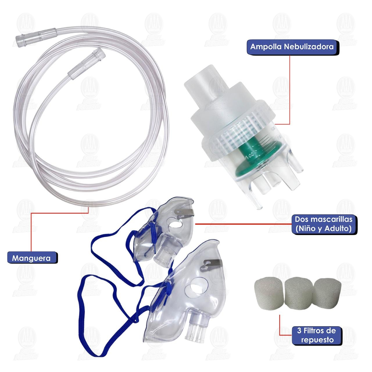 Nebulizador de compresor, pistón autolubricado, de alta potencia. No necesita mantenimiento, resistente y de gran durabilidad. Para niños y adultos. Fácil transportación. Nebulizador ideal y efectivo para tratamiento de vías respiratorias.