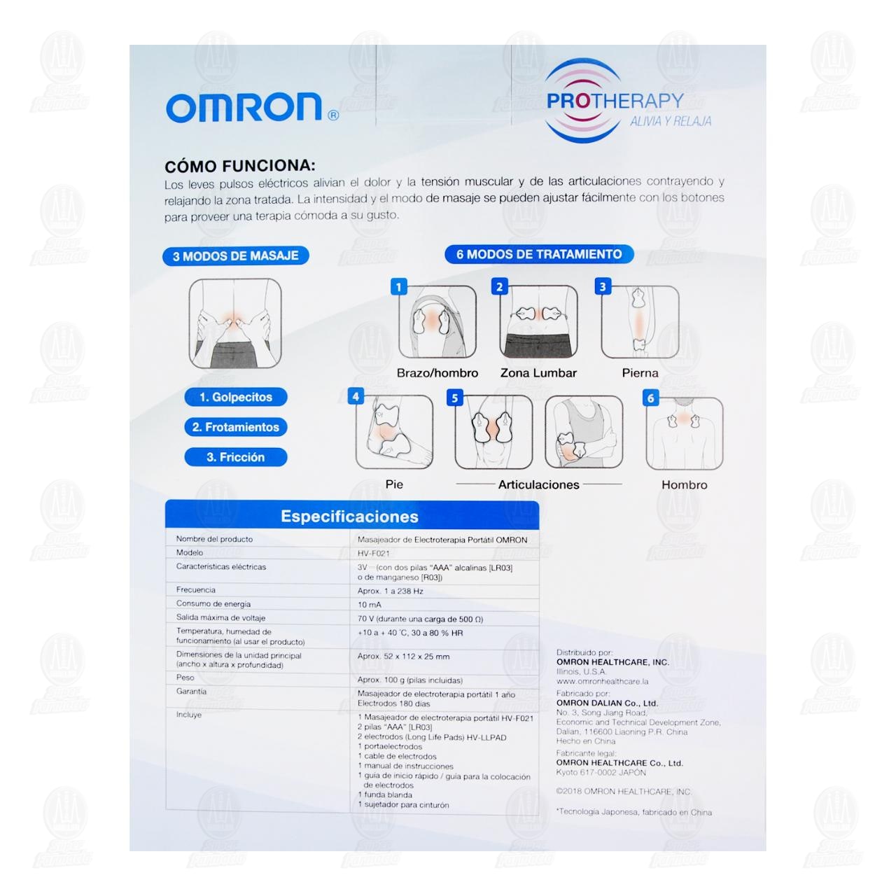 Masajeador Omron protherapy de Electroterapia Portátil premium modelo: HV-F021, Ayuda a aliviar el dolor, la tensión y a relajar los músculos en sesiones de tan solo 15 minutos. Contiene 1 pieza.