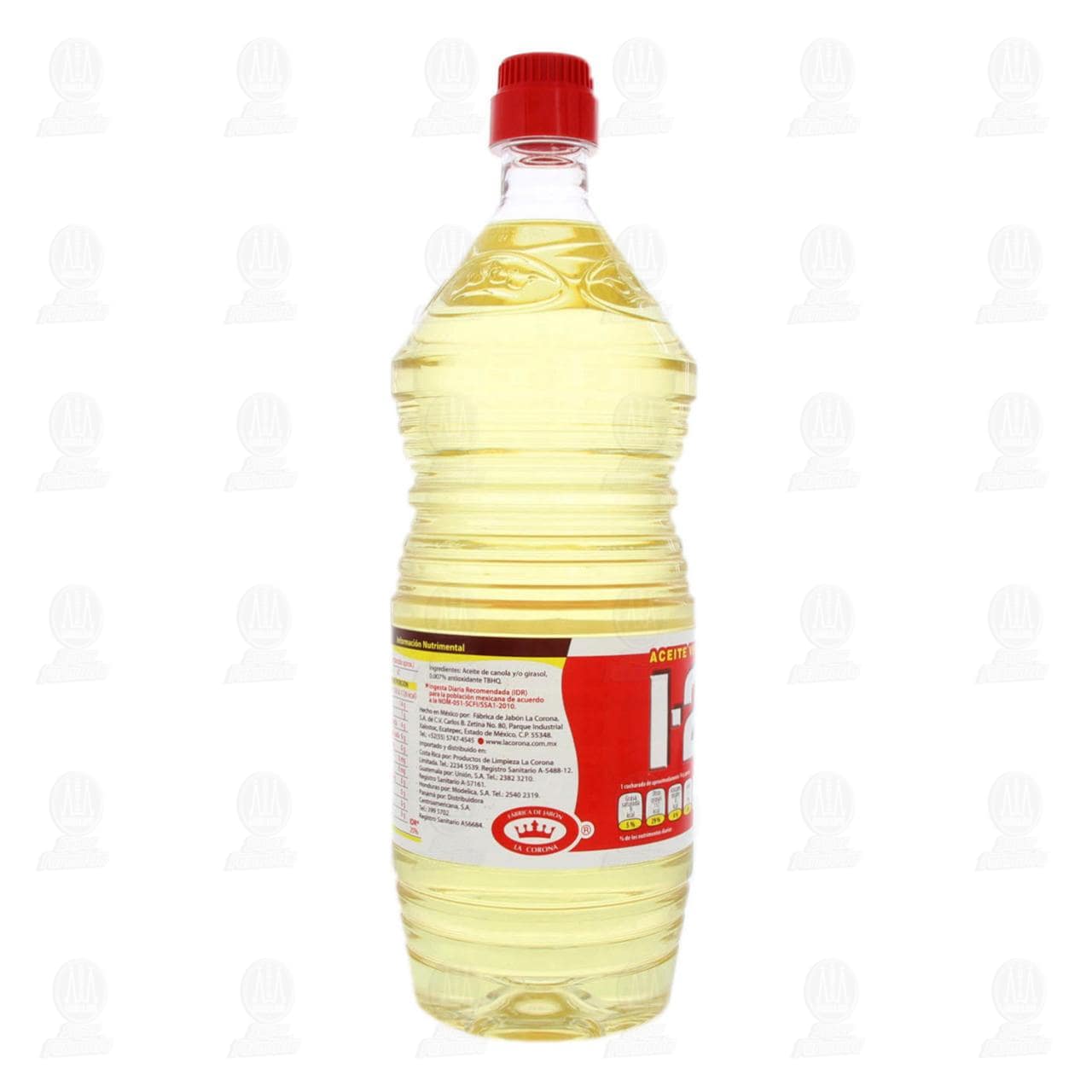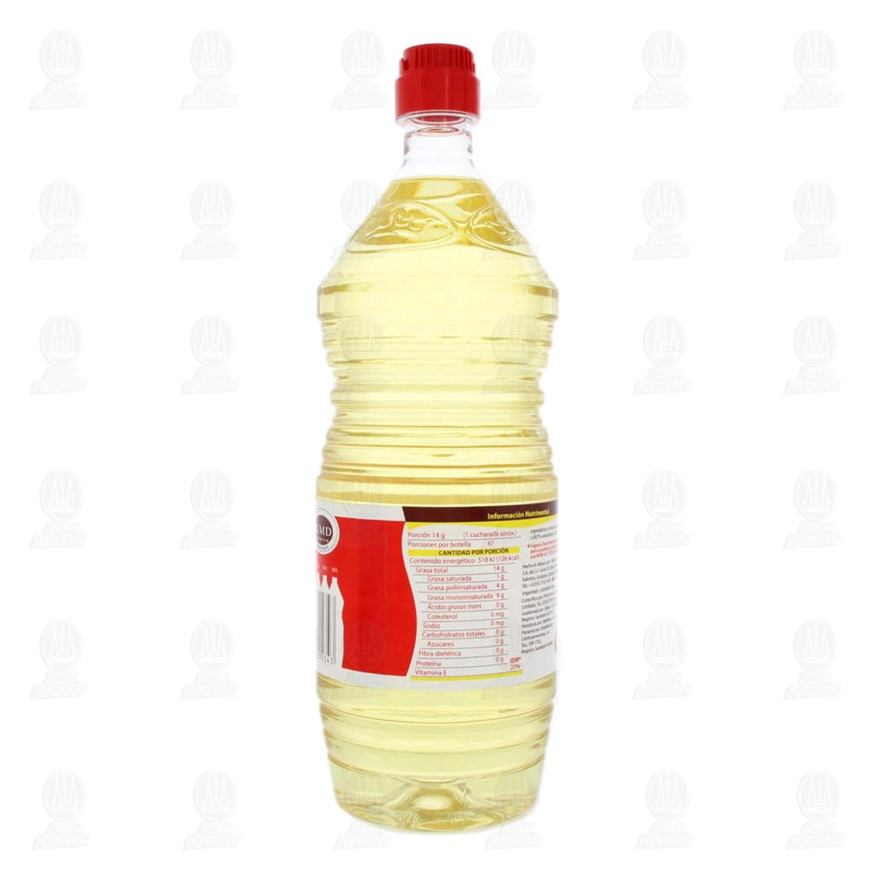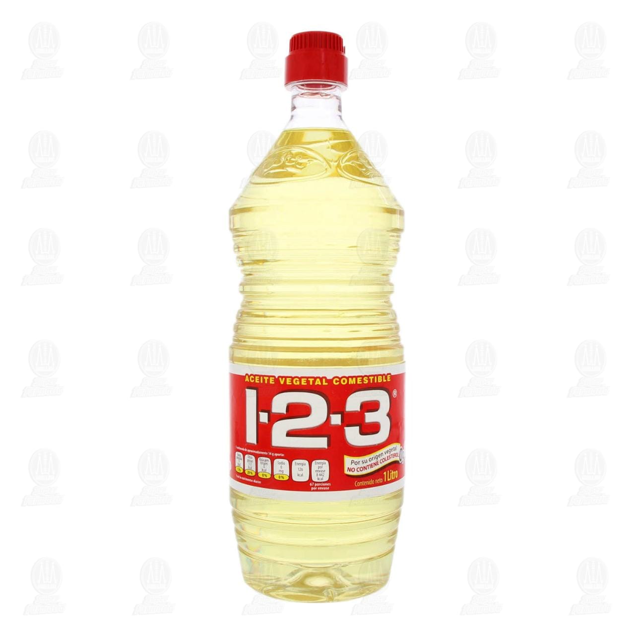 Aceite comestible 1-2-3 de origen vegetal, no contiene colesterol. Botella con 1 litro.