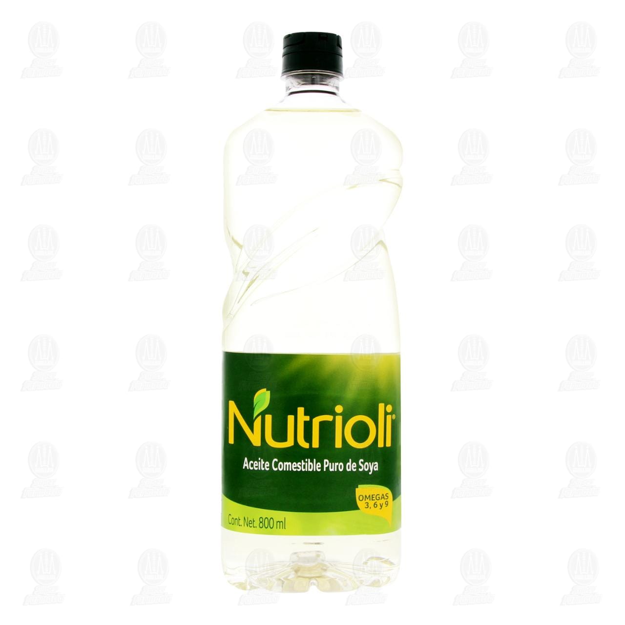 Aceite Comestible Nutrioli puro de soya con omegas 3, 6 y 9. Botella con 800 mililitros.