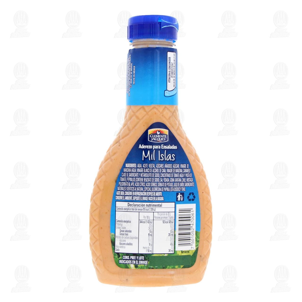 Aderezo Clemente Jacques Mil Islas, para ensaladas. Botella con 237 gramos.