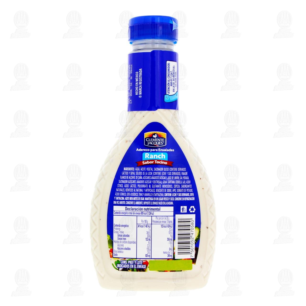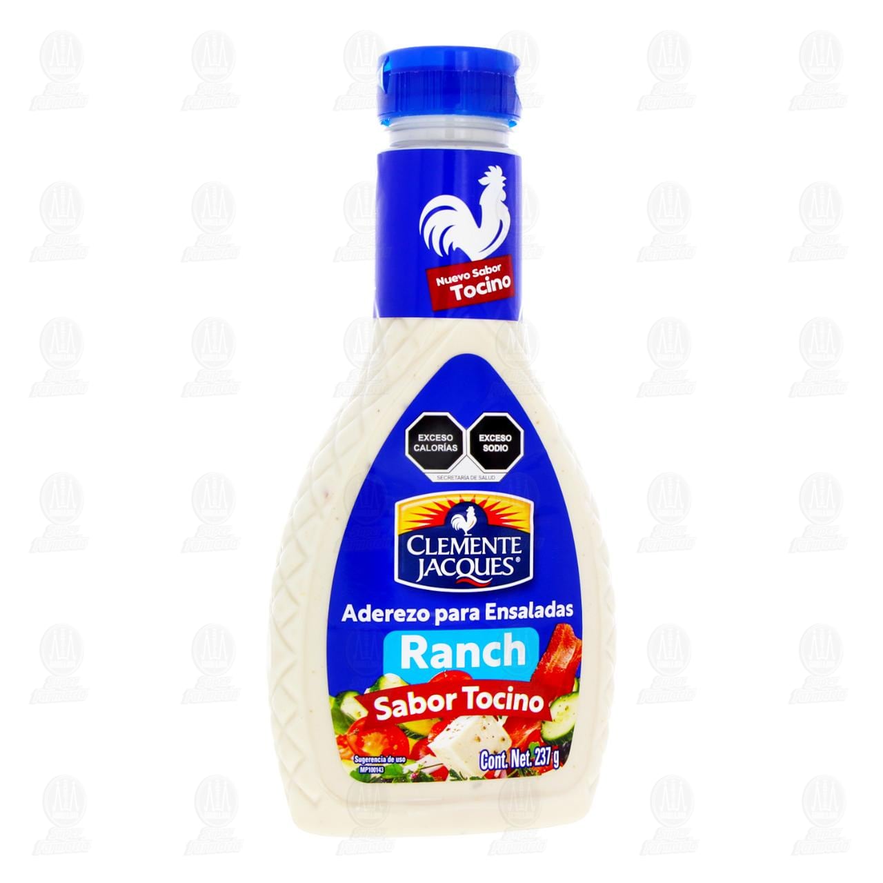 Aderezo Clemente Jacques Ranch Sabor Tocino ideal para ensaladas, con nuevo sabor tocino para acompañar tus platillos favoritos. Contiene 237 gramos.