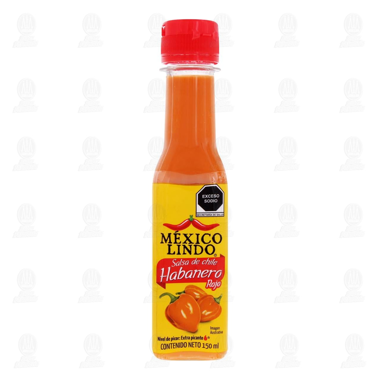 Salsa México Lindo de chile habanero rojo, extra picante. Botella con 150 mililitros.