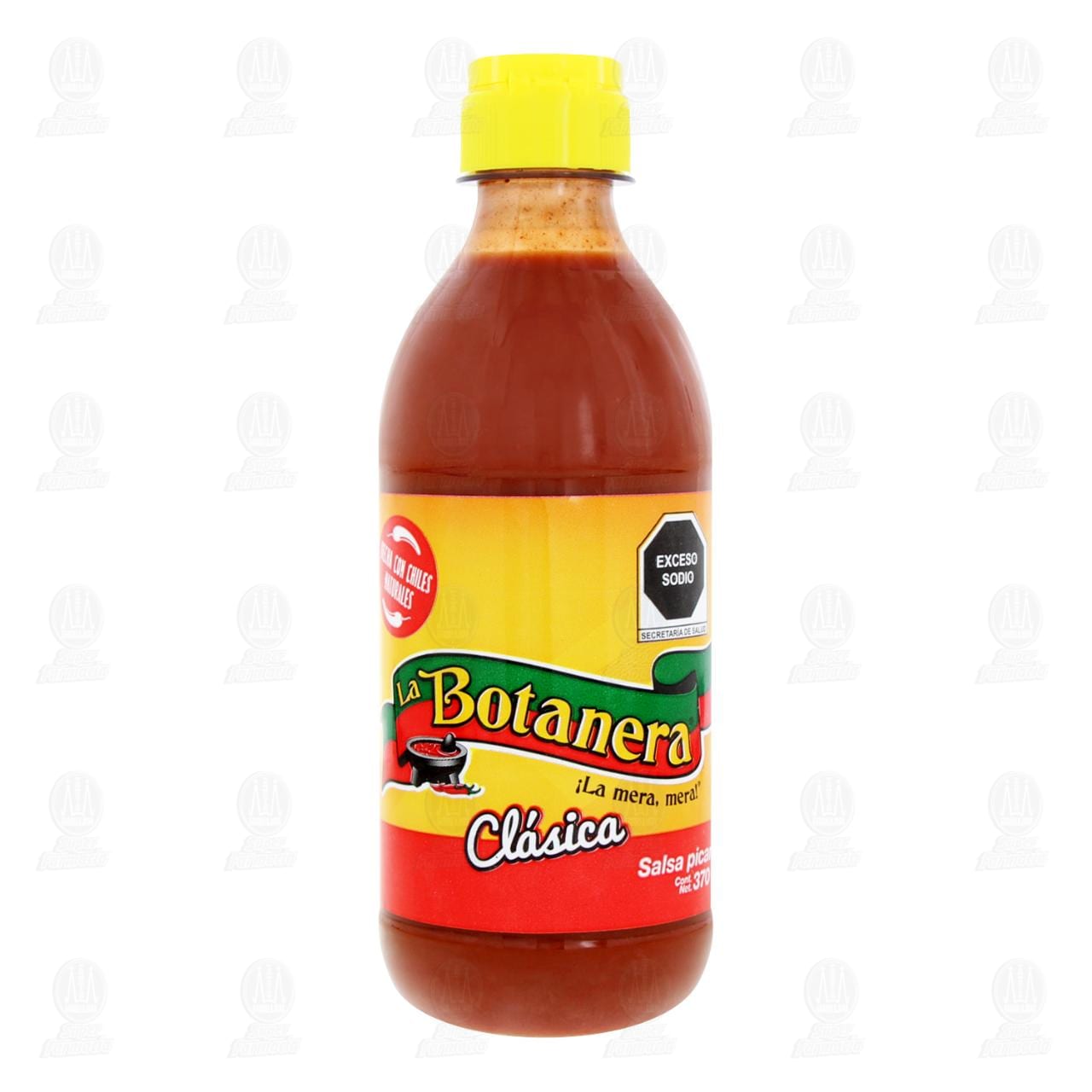 Salsa picante La Botanera Clásica, hecha con chiles naturales. Botella con 370 mililitros.