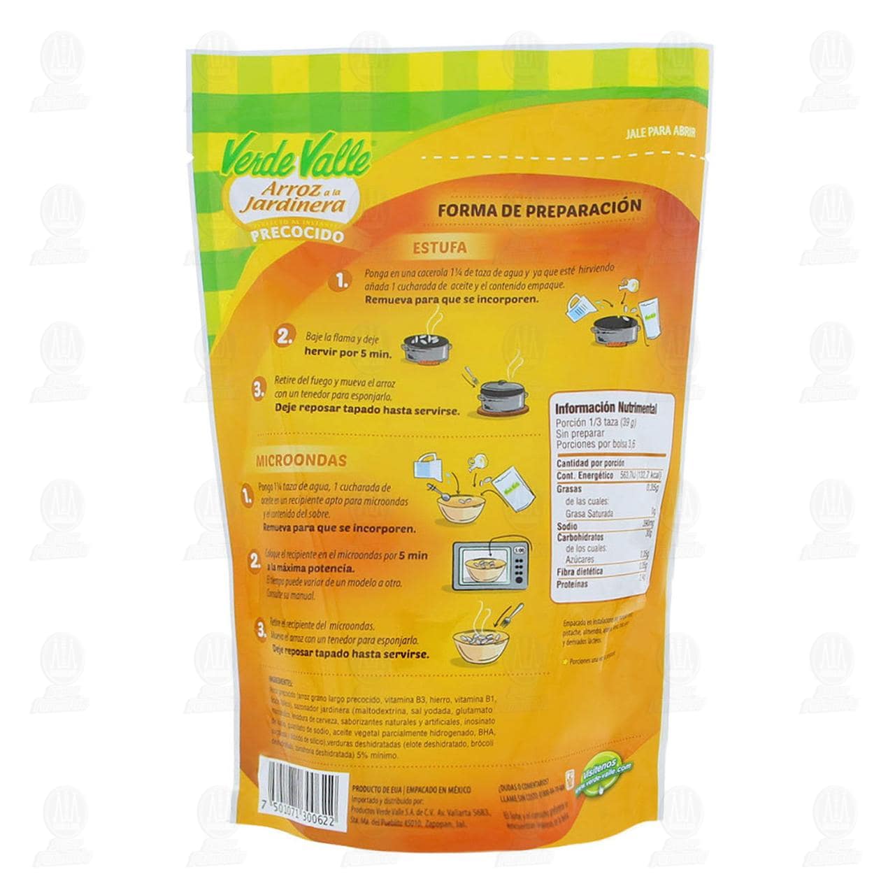 Arroz precocido Verde Valle estilo a la jardinera. Bolsa con 140 gramos, rinde 4 porciones.