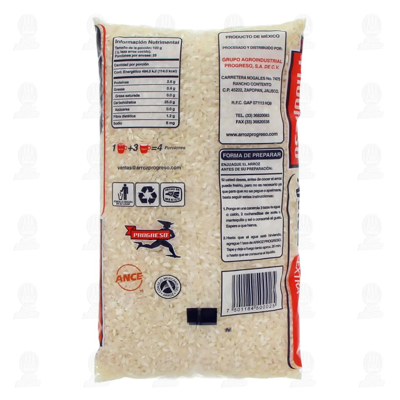 Arroz Progreso super extra 100% mexicano. Bolsa con 1 kilogramo.