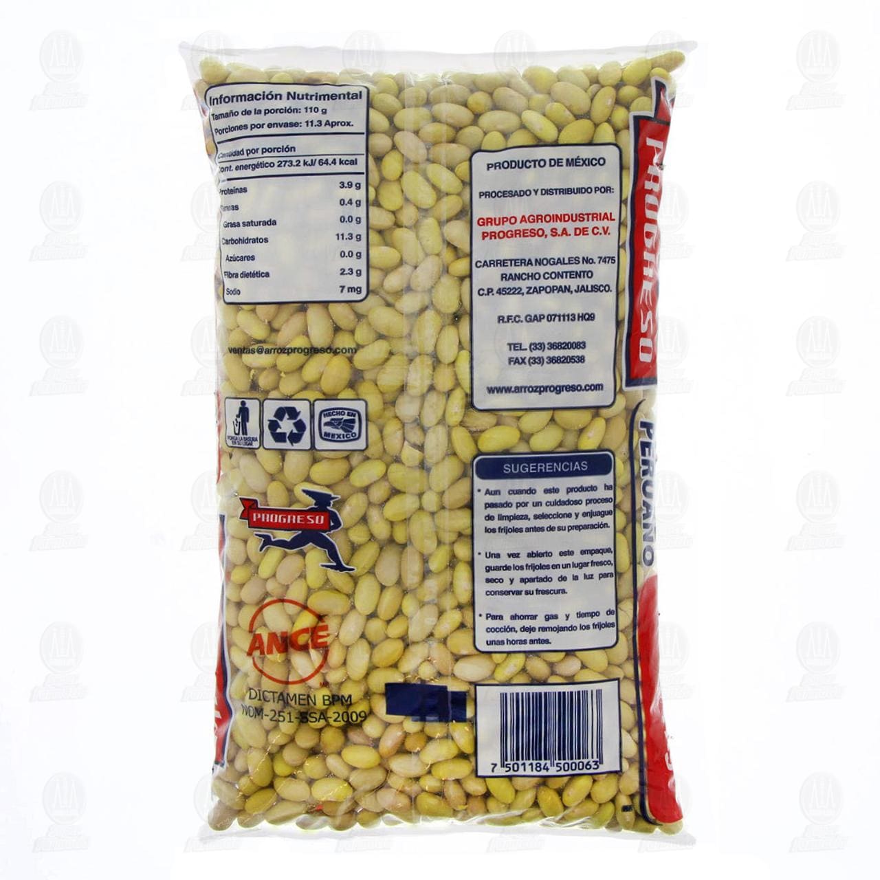 Frijol peruano Progreso, 100% mexicano. Bolsa con 1 kilogramo.