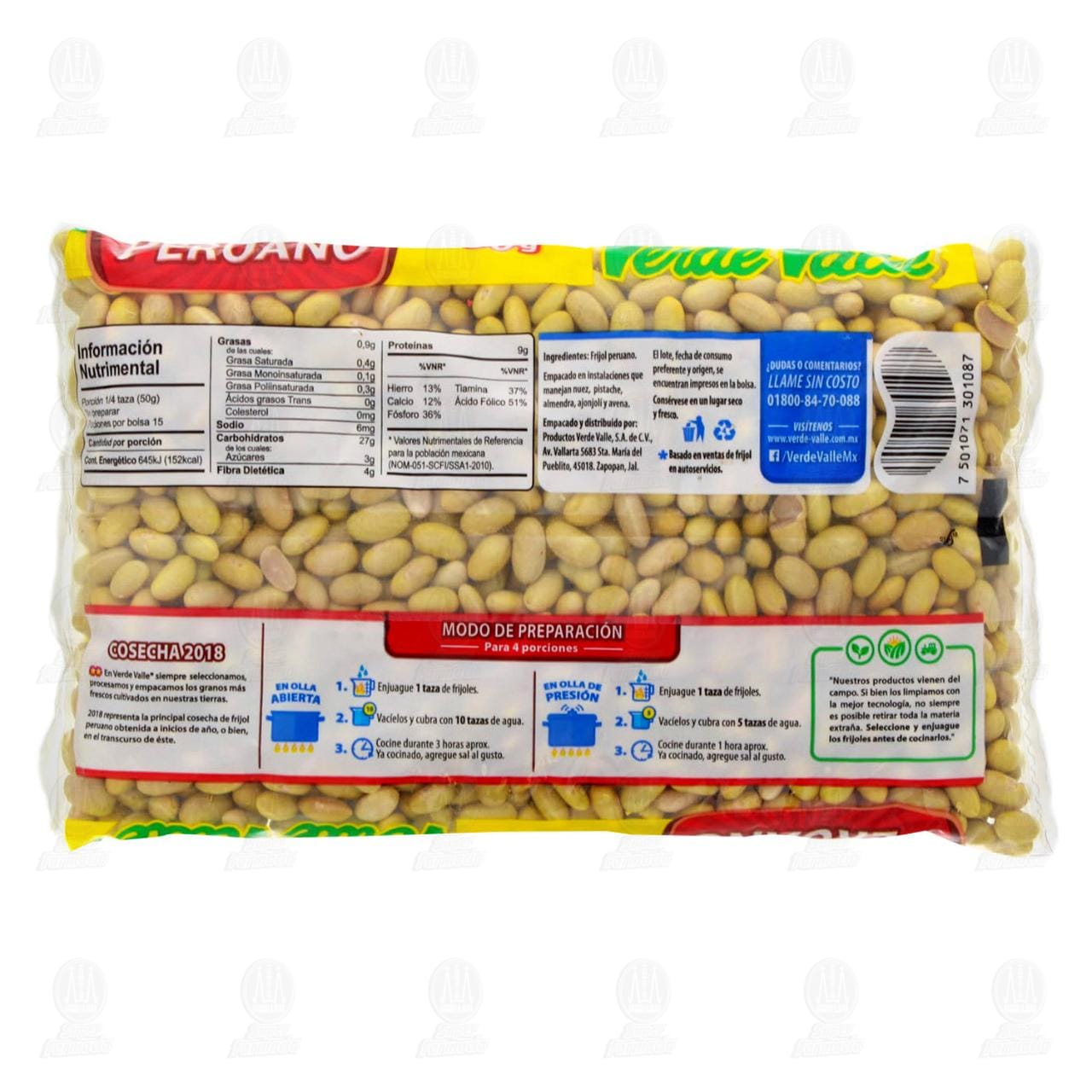 Frijol peruano Verde Valle. Bolsa con 750 gramos.