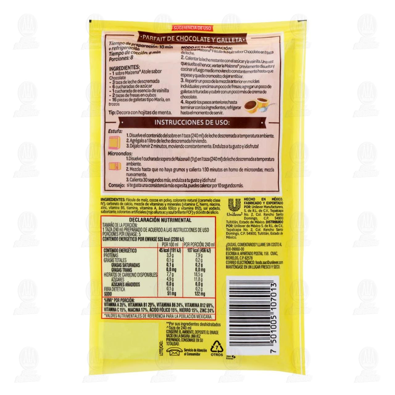 Atole Maizena, fécula de maíz fortificado con vitaminas y minerales sabor chocolate. Sobre con 47 gramos.