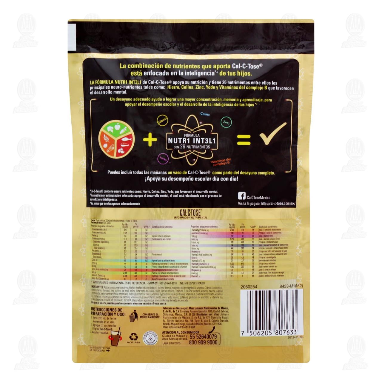 Chocolate en polvo Cal-C-Tose fortificado, para preparar una bebida sabor a chocolate con una combinación de nutrientes enfocados en inteligencia. Bolsa con 160 gramos.