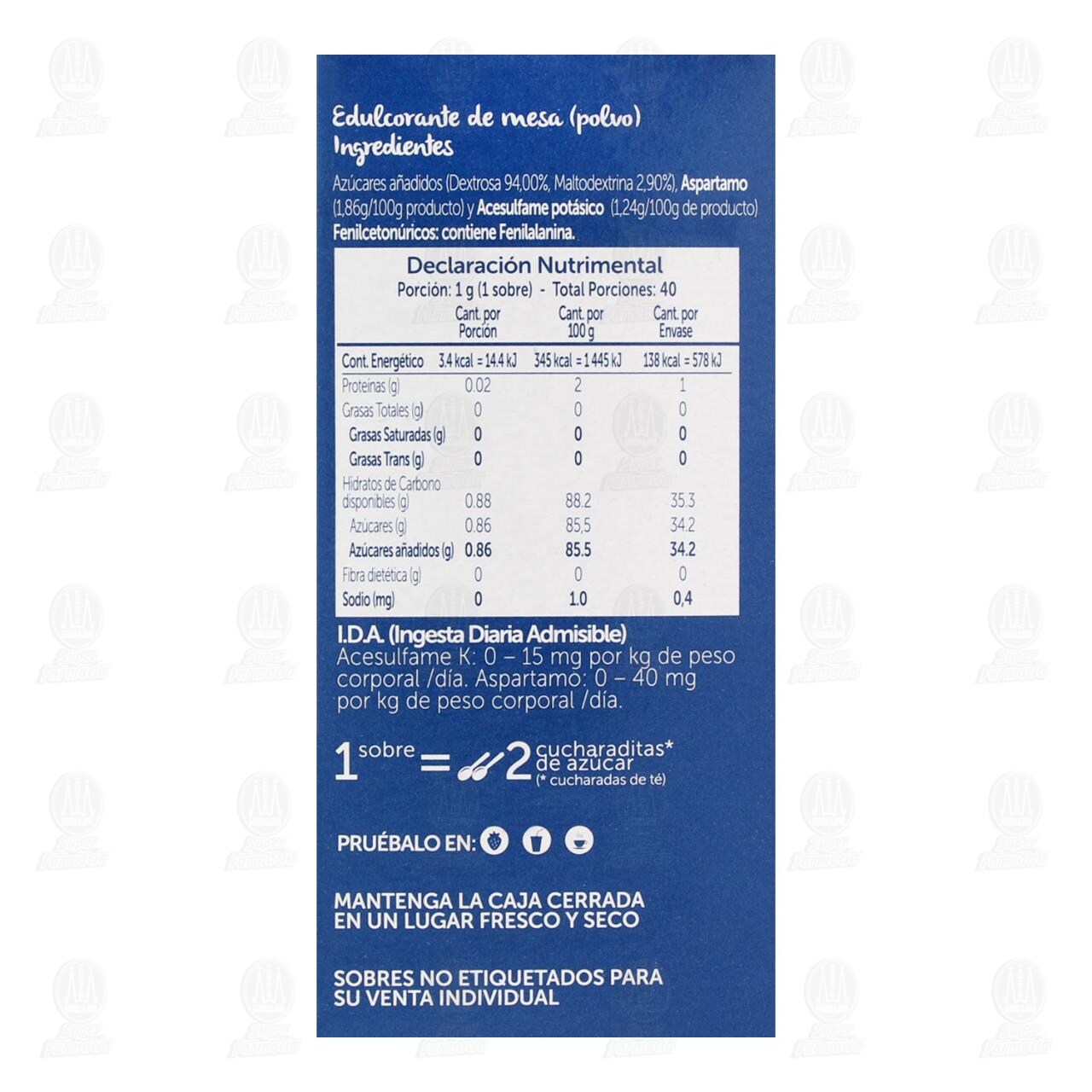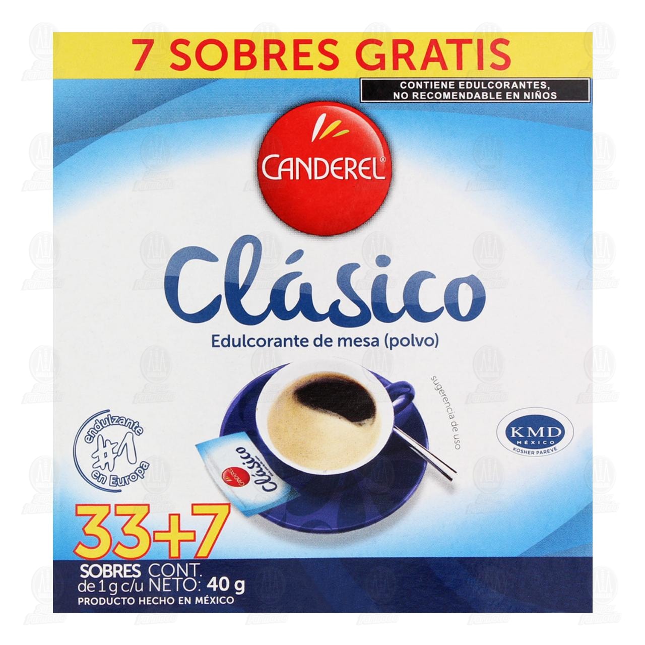 Sustituto de azúcar Canderel Clásico, edulcorante de mesa. Caja de 40 gramos con 40 sobres (33 + 7 gratis)(cada uno de 1 gramo).