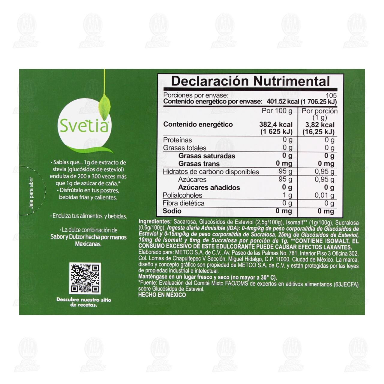 Endulzante de Mesa Svetia con Ingredientes de Origen Natural. Contiene 105 Sobres de 1 gramo Cada Uno.