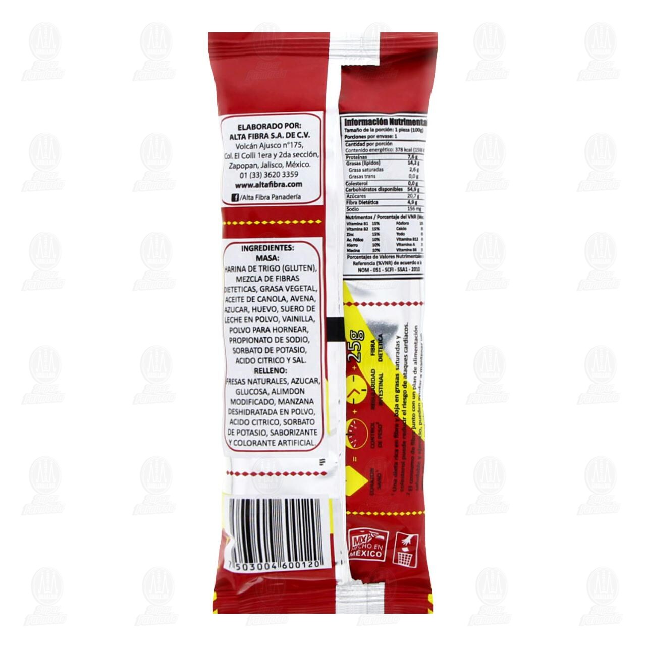 Barra de avena con fresa Alta Fibra Ave Fresa. Contiene 100 gramos.