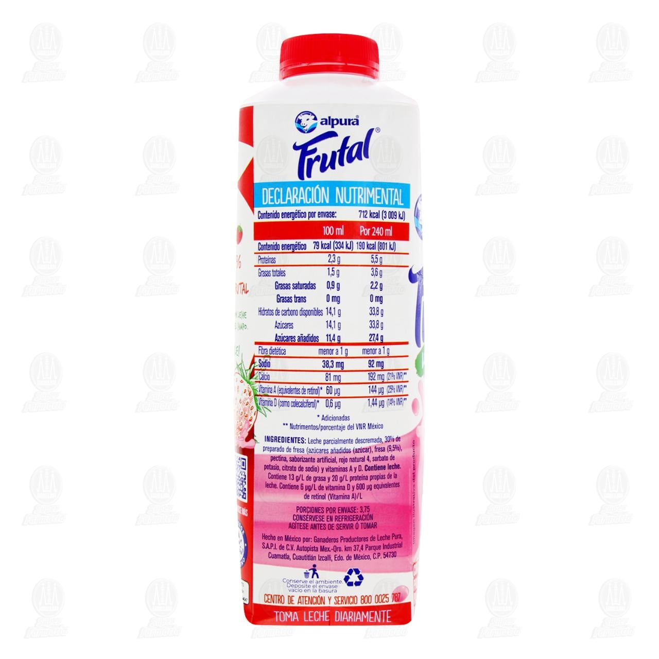 Leche Alpura Frutal + Fresa, Producto lácteo combinado pasteurizado con fresa adicionado con vitaminas A y D. Envase con 900 mililitros.