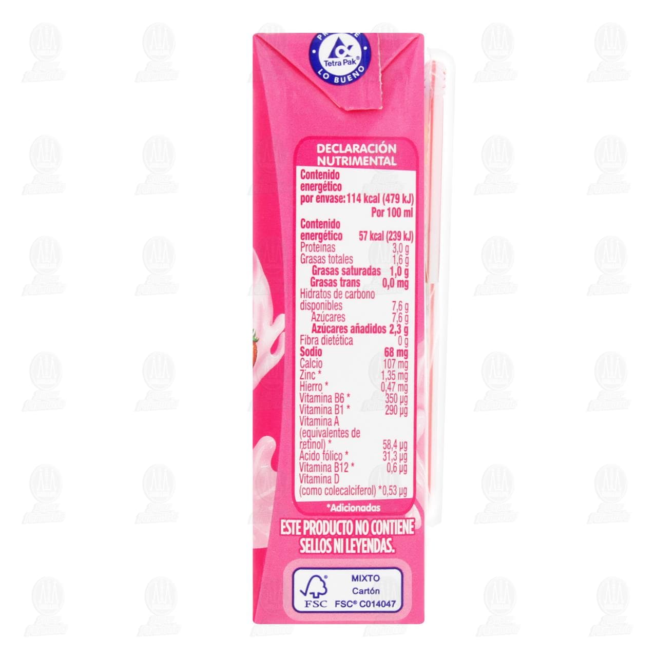 Leche Alpura Vaquitas fresúper semidescremada rehidratada, deslactosada, ultrapasteurizada con sabor a fresa, adicionada con vitaminas A y D y minerales. Envase con 200 ml.