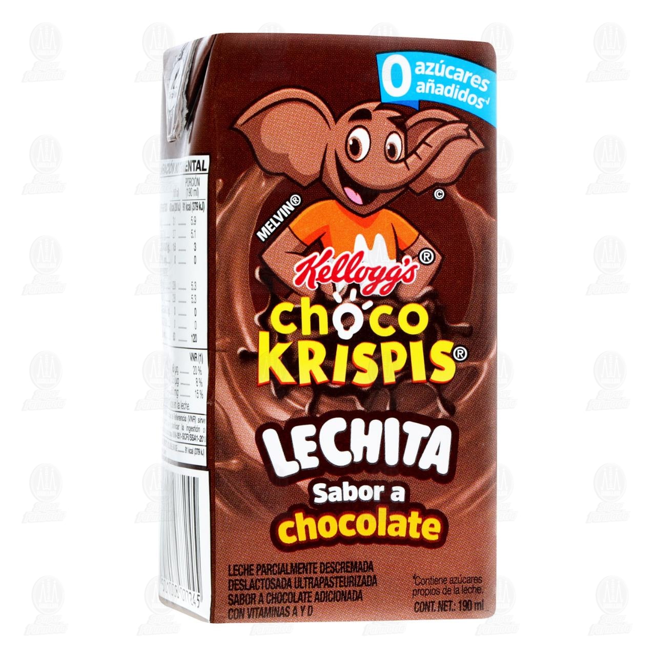 Lechita Kellogg's Choco Krispis sabor a chocolate parcialmente descremada deslactosada ultrapasteurizada adicionada con vitaminas A y D. Contiene 190 mililitros.