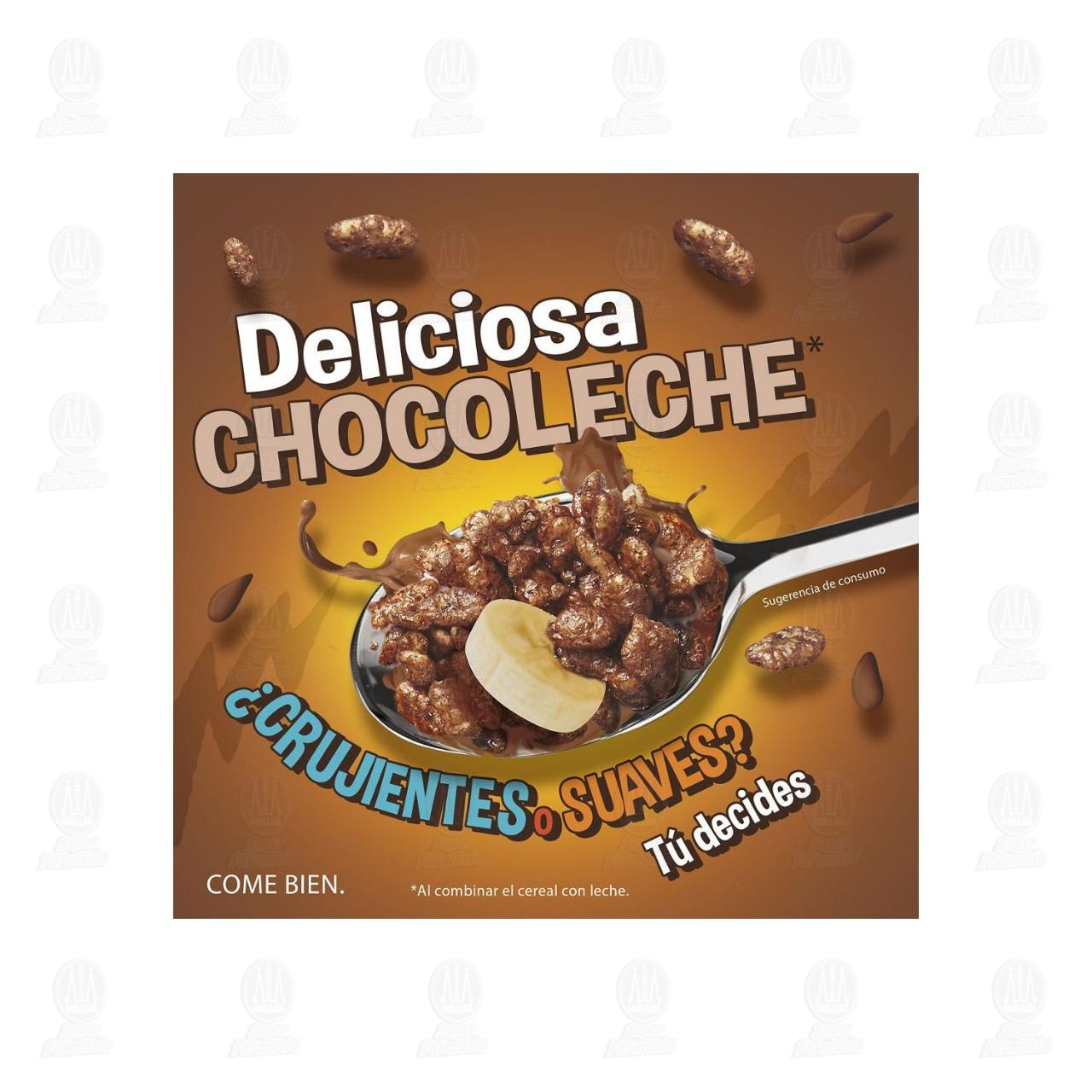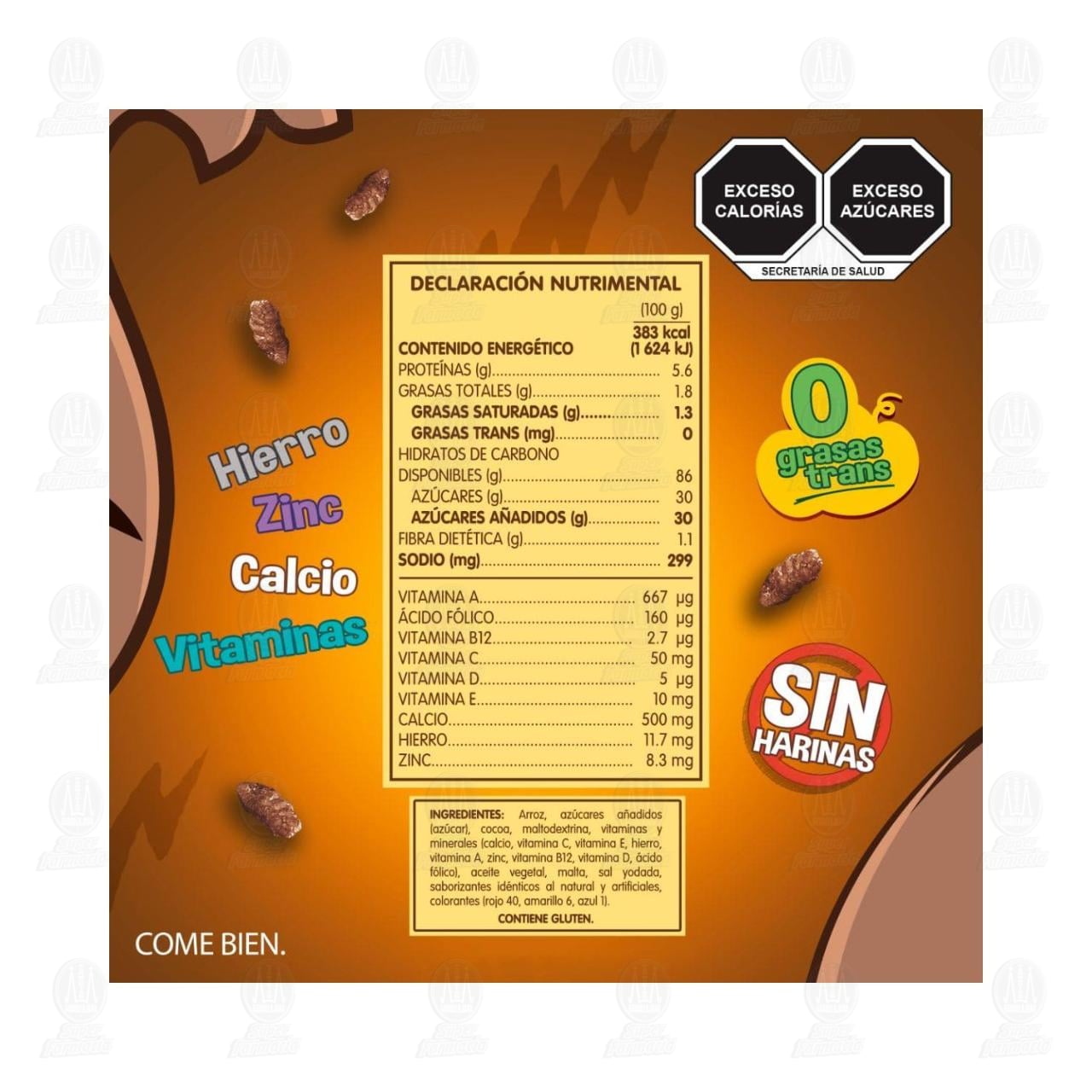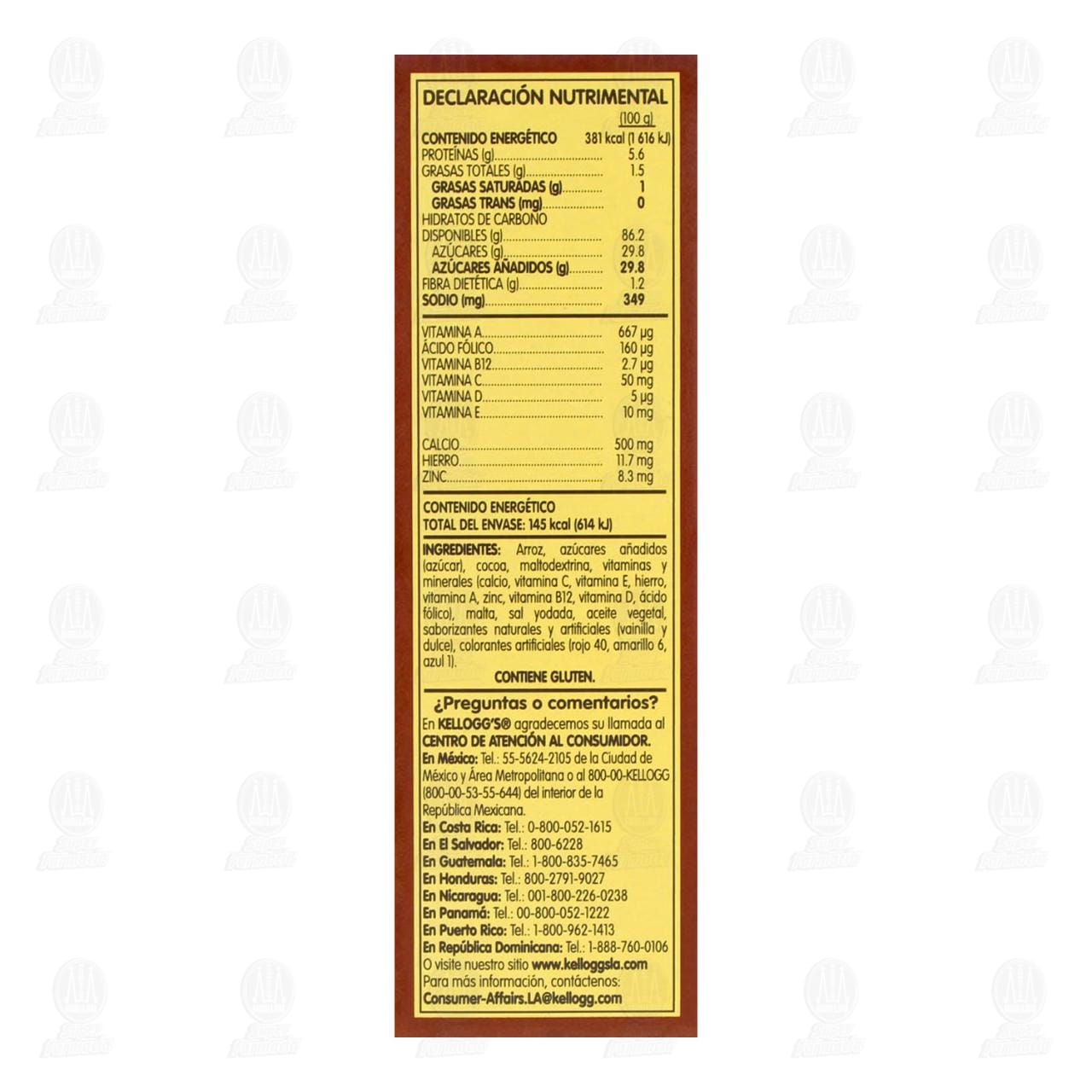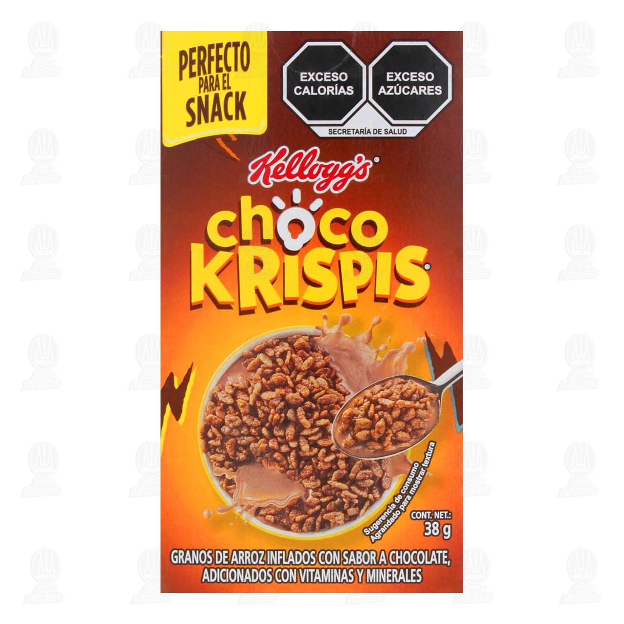 Cereal Choco Krispis de Kellogg's, granos de arroz inflados con sabor a chocolate, adicionados con vitaminas y minerales. Caja con 38 gramos.