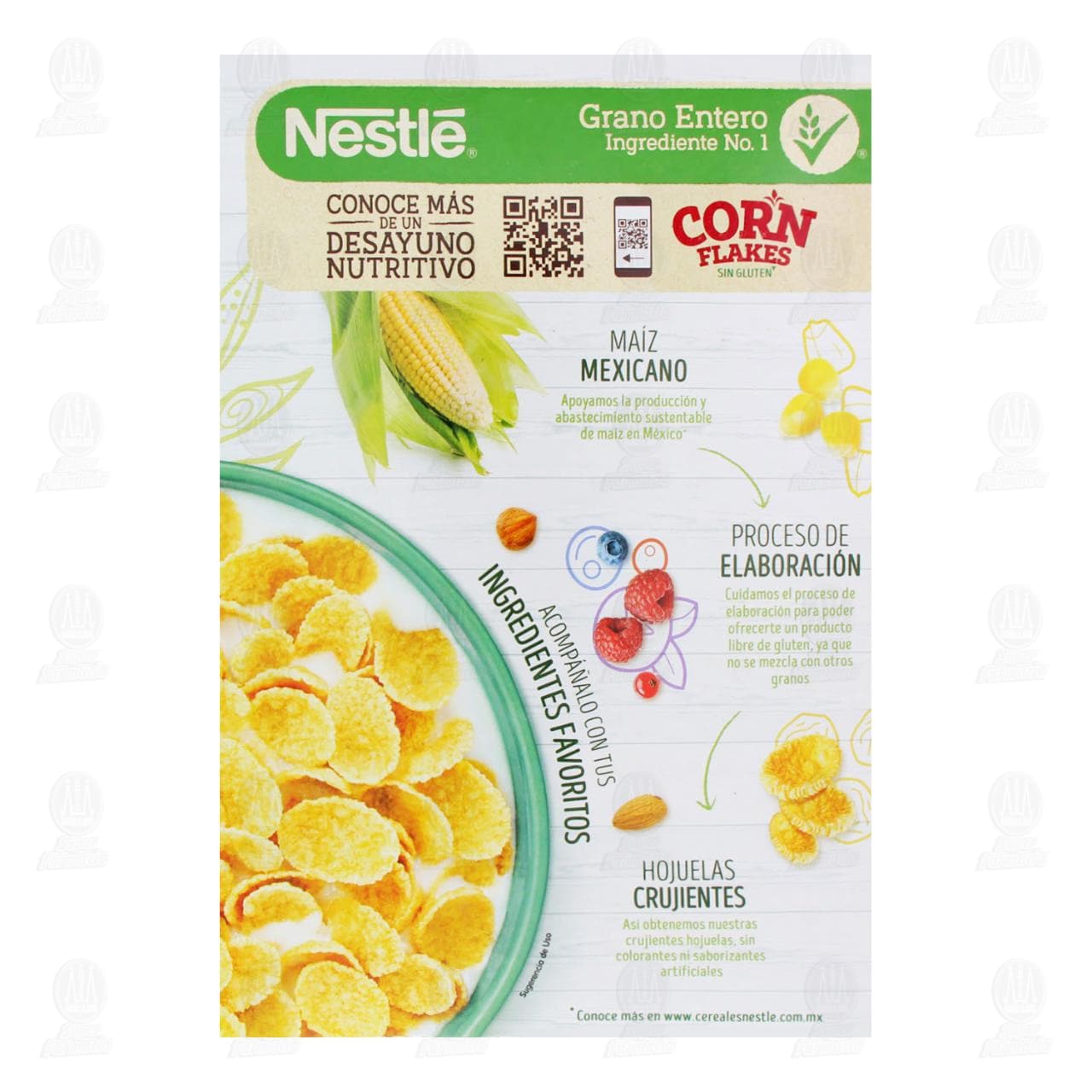 Cereal Nestlé Corn Flakes Sin Gluten, hojuelas de maíz integral, fortificado, libre de gluten. Caja con 500 gramos.