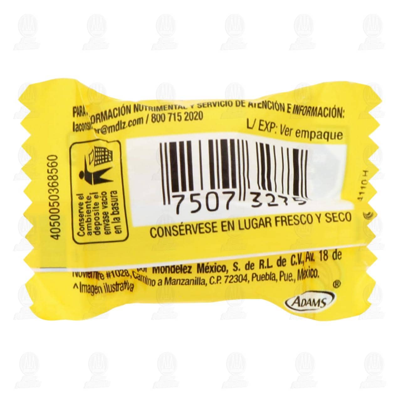 Chicle Bubbaloo, goma de mascar con centro líquido sabor a plátano. Contiene 5.1 gramos.