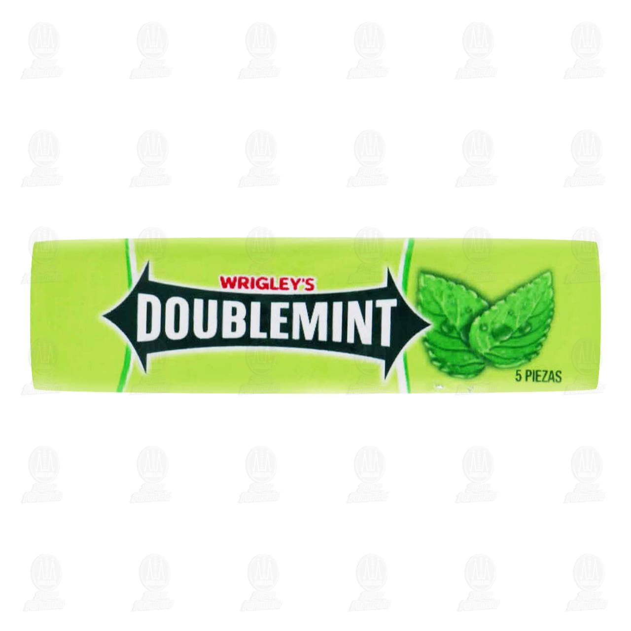 Chicles Wrigley's Doublemint, goma de mascar sabor menta. Paquete de 12.5 gramos con 5 piezas.