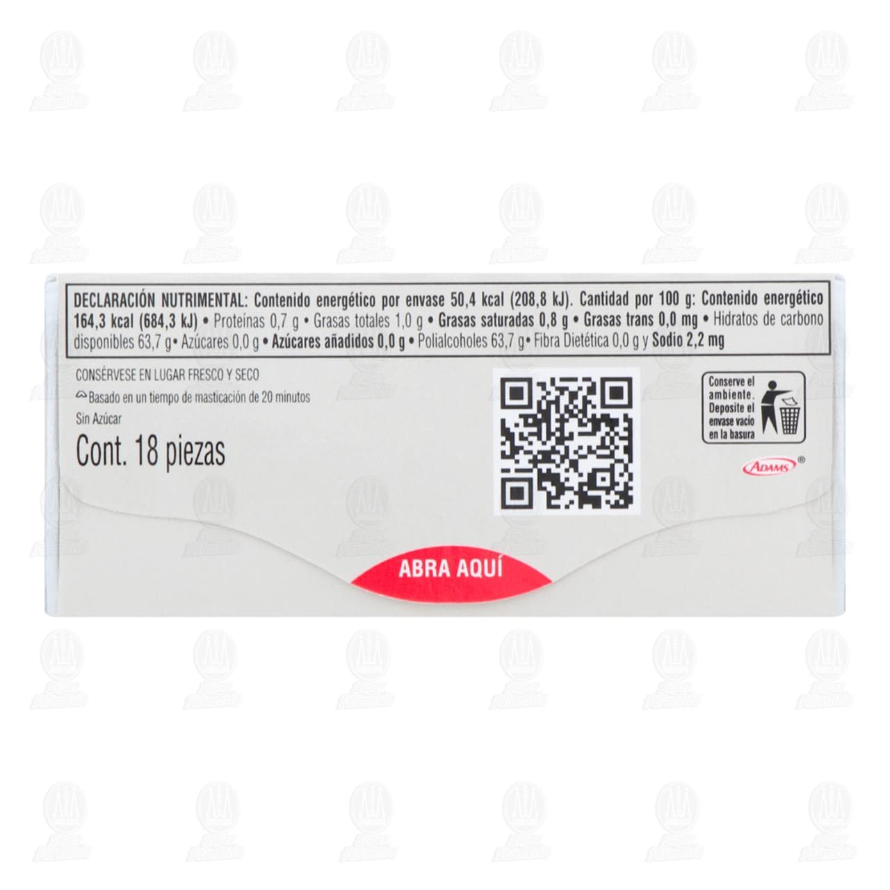 Chicles Trident, Goma de Mascar sin Azúcar Sabor a Menta Fuerte. Paquete de 30.6 gramos con 18 piezas.
