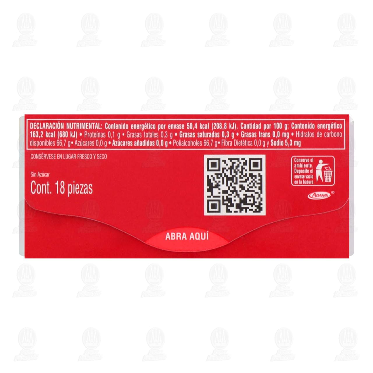 Chicles Trident, goma de mascar sin azúcar sabor a canela. Paquete de 30.6 gramos con 18 piezas.
