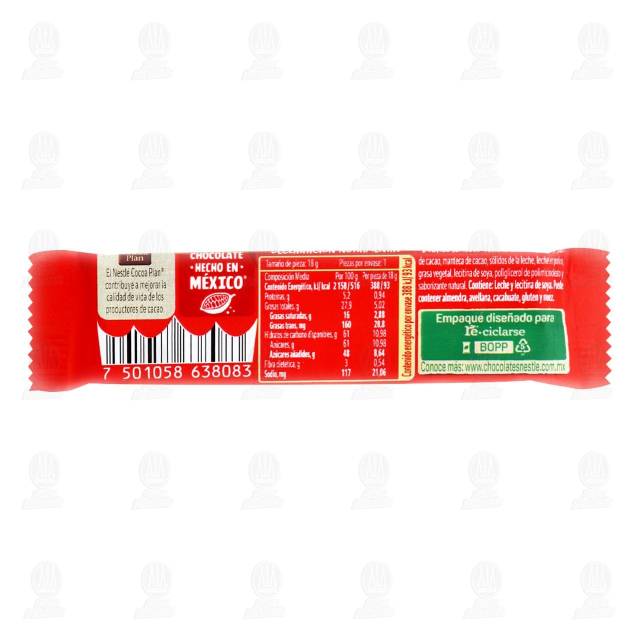 Chocolate Nestlé Carlos V original con leche. Contiene 18 gramos.