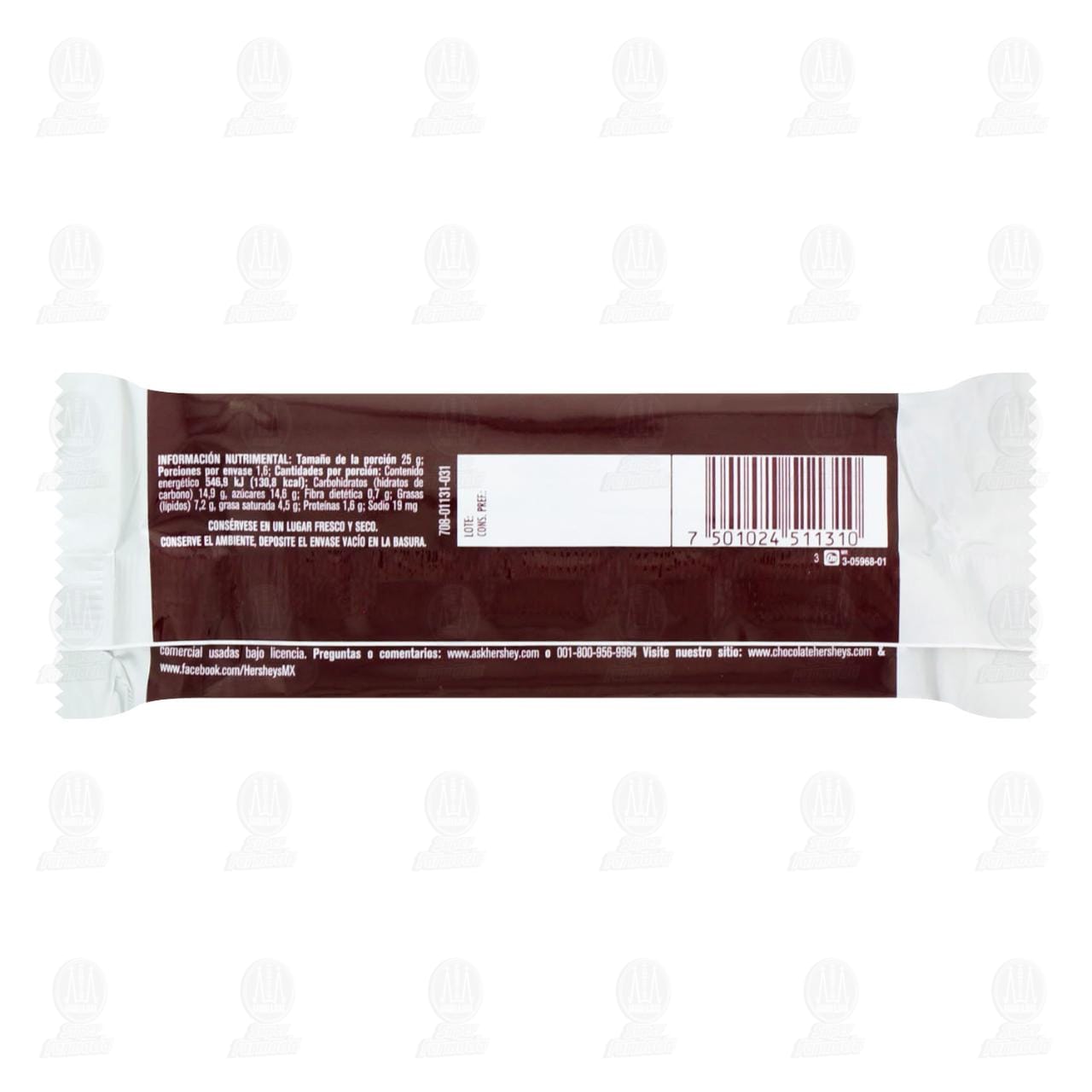 Chocolate Hershey's Milk, con leche. Paquete con 40 gramos.