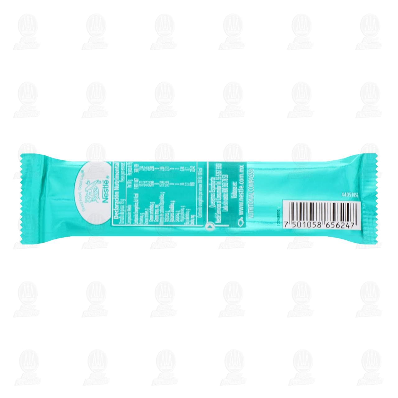 Chocolate Nestlé Larín, con leche descremada, sin azúcar y con trozos de almendras. Paquete con 19 gramos.