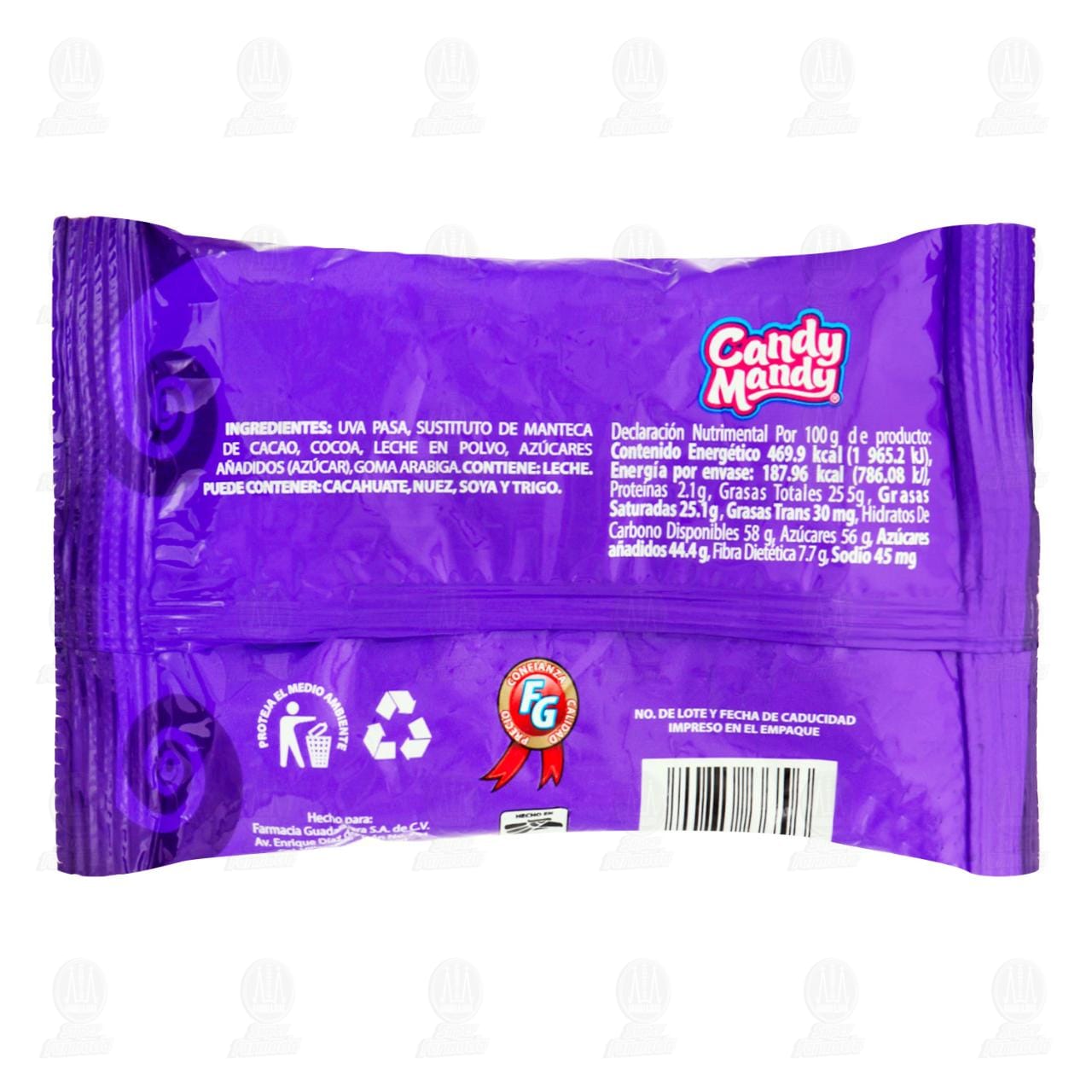 Pasas Candy Mandy Cubiertas Sabor a Chocolate. Contiene 40 gramos.