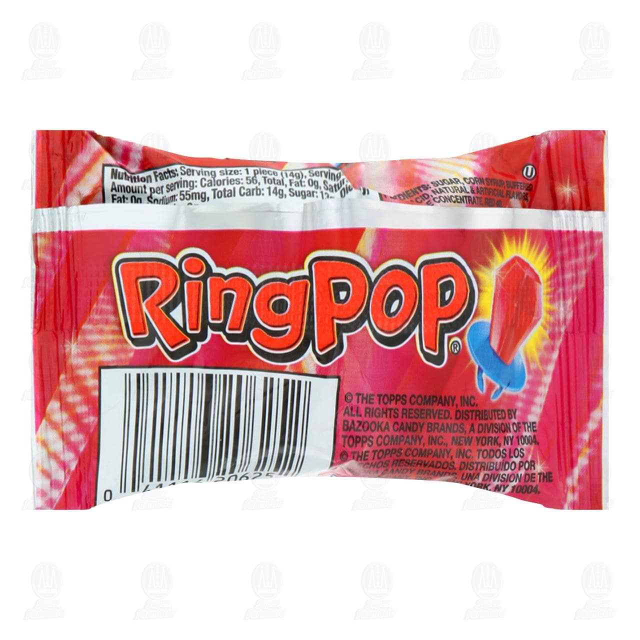 Dulce de caramelo macizo Ring Pop en forma de anillo, varios sabores. Contiene 14 gramos.