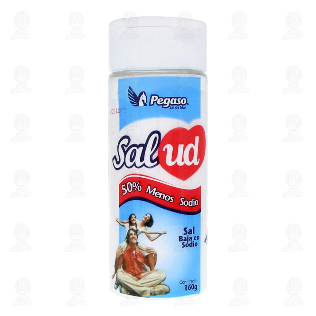 Sal de mesa Pegaso Salud baja en sodio, 50% menos. Bote con 160 gramos.