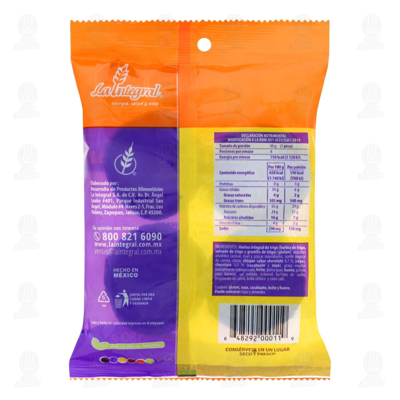 Bisquets integrales La Integral, con chispas sabor chocolate. Paquete con 180 gramos.
