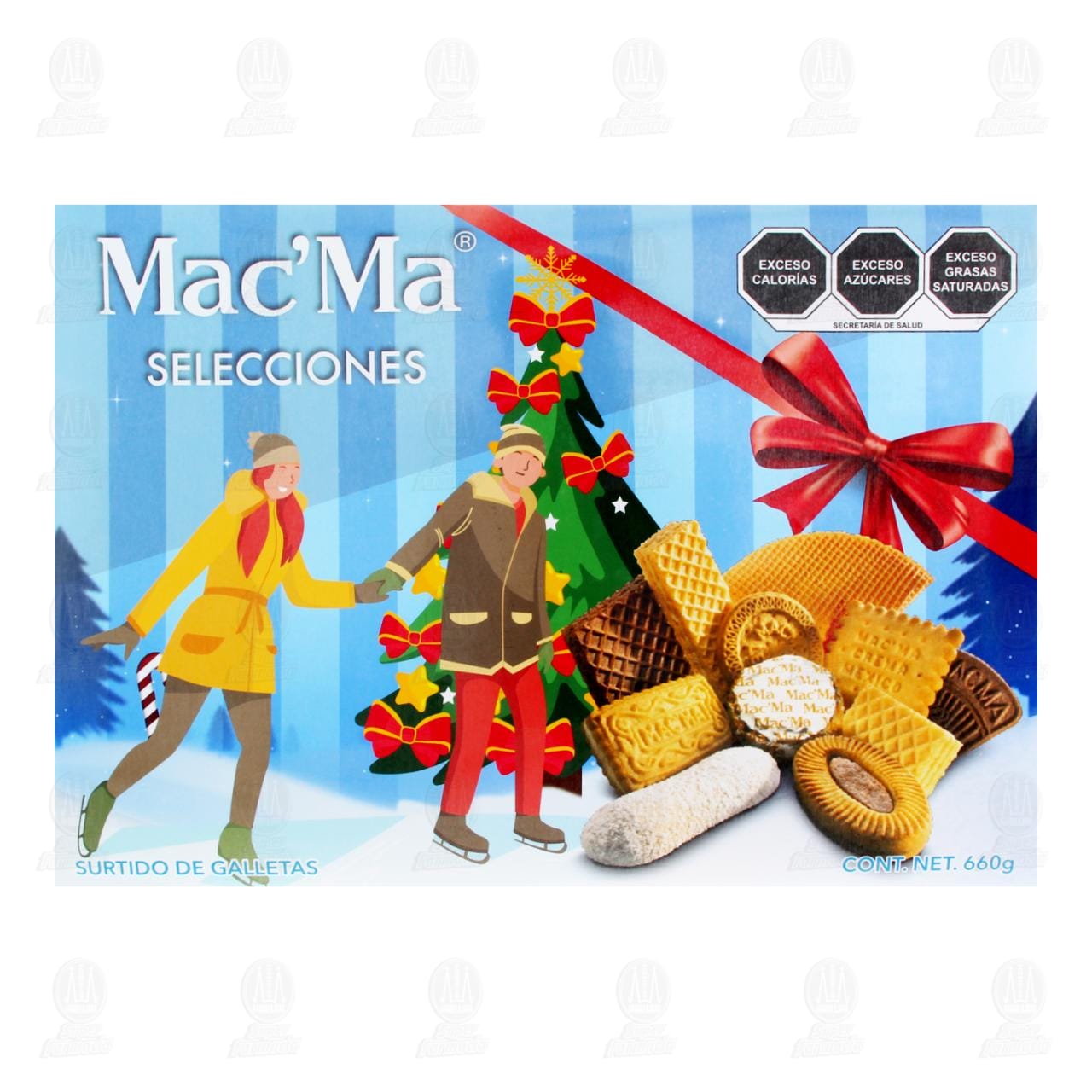Galletas Mac'Ma Selecciones surtidas con variedad de sabores, ideales para compartir en reuniones o disfrutar en cualquier momento. Contiene 660 gramos.