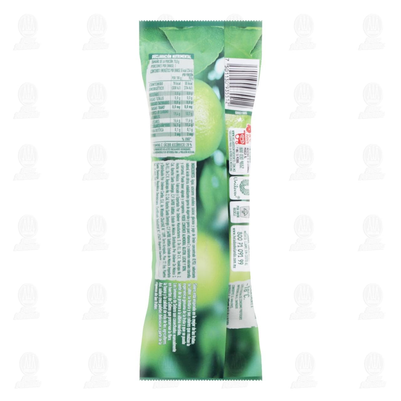 Paleta Holanda Solero, elaborada con helado de agua sabor limón citrus de Colima. Contiene 65 mililitros.