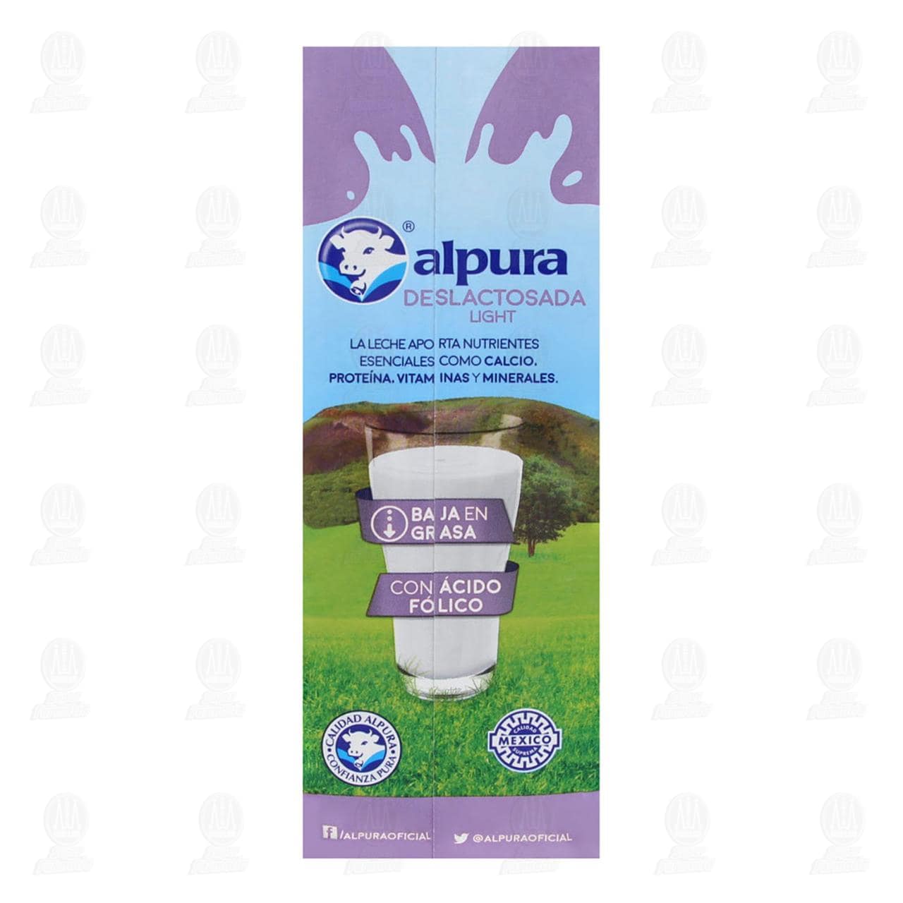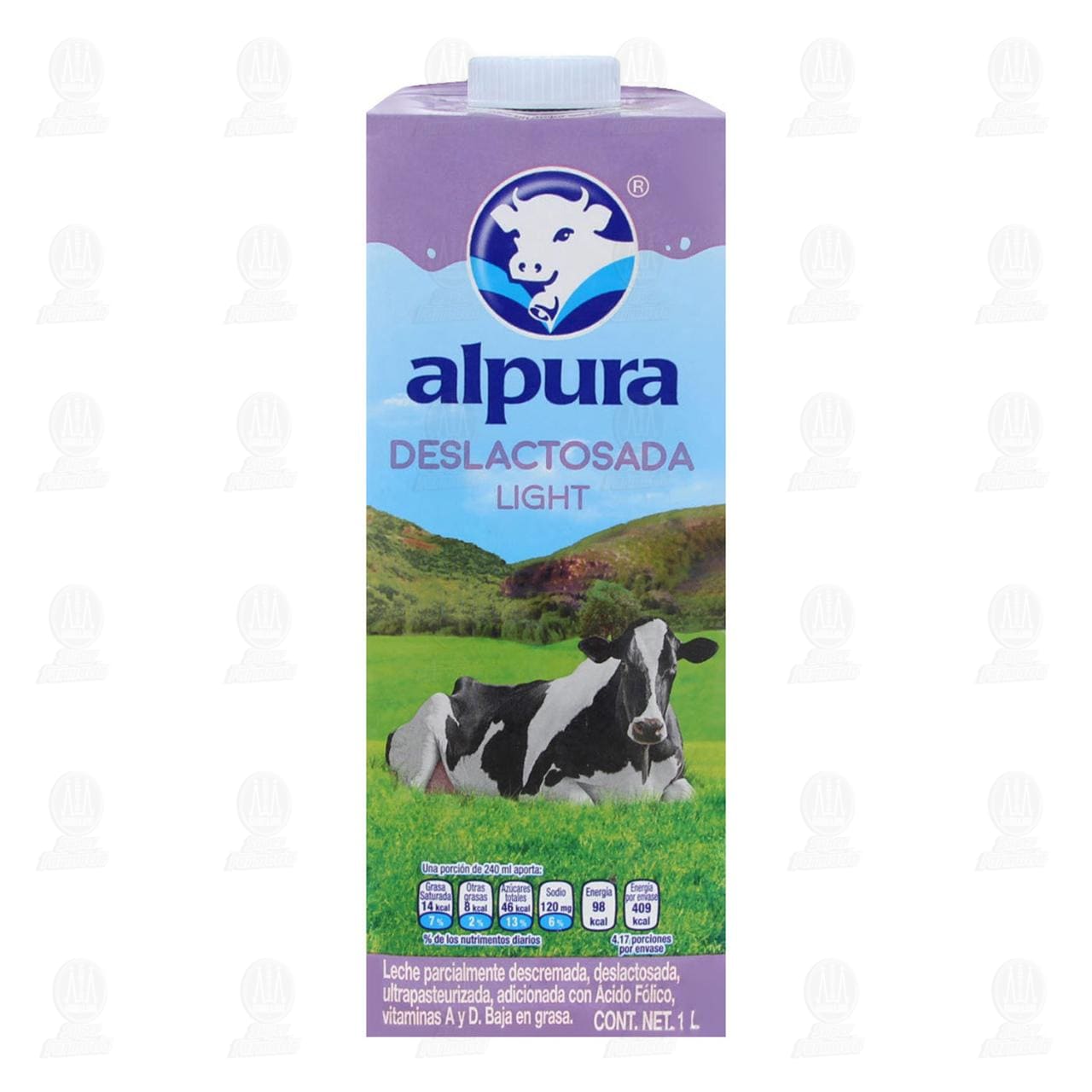 Leche Alpura Deslactosada Light parcialmente descremada ultrapasteurizada, adicionada con ácido fólico, vitaminas A y D, baja en grasa. Envase de 1 litro.
