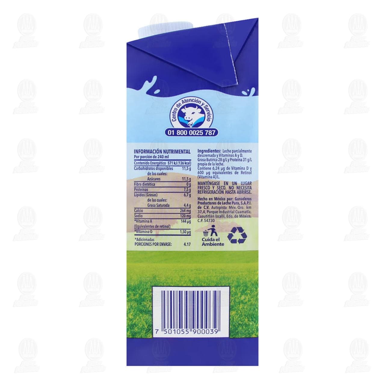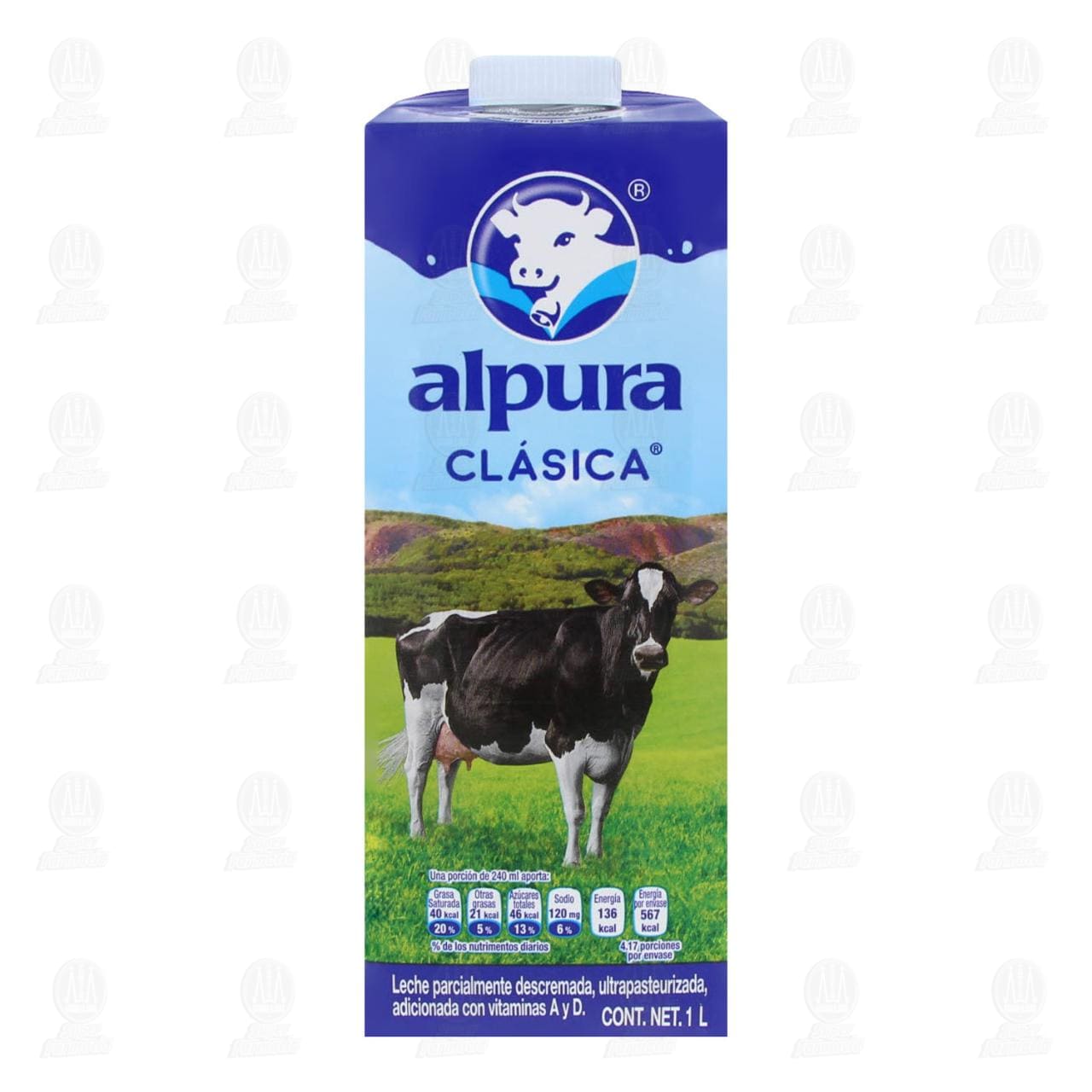 Leche Clásica Alpura parcialmente descremada ultrapasteurizada, adicionada con vitaminas A y D. Envase de 1 litro.