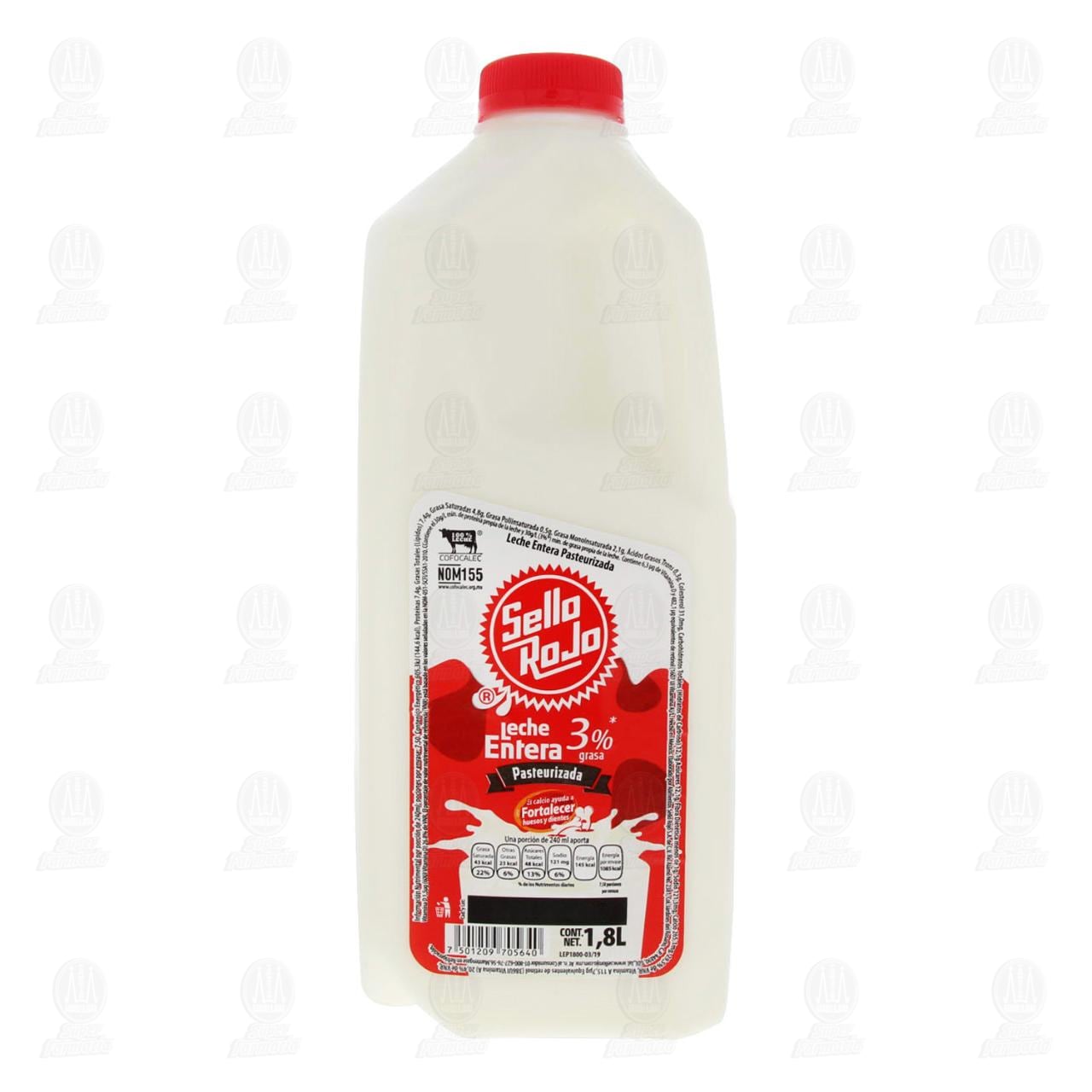 Leche Sello Rojo entera pasteurizada adicionada con vitaminas A y D, con 3% grasa. Bote con 1.8 litros.