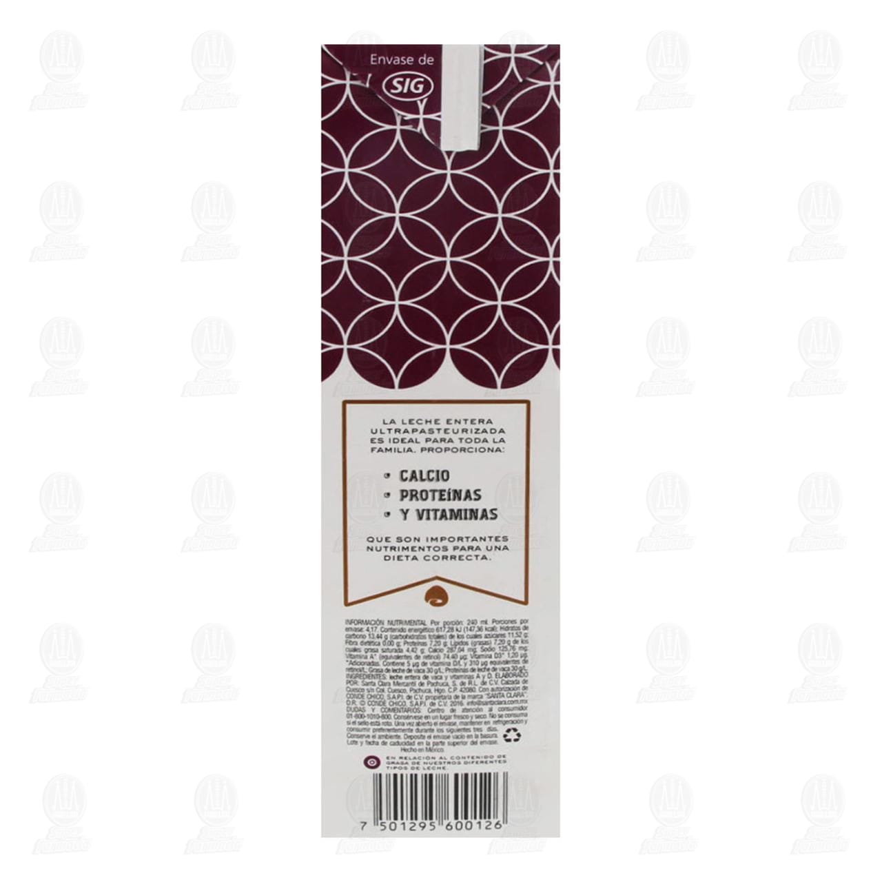 Leche entera Santa Clara 100% pura de vaca, con consistencia cremosa, ultrapasteurizada y adicionada con vitaminas A y D. Envase con 1 litro.
