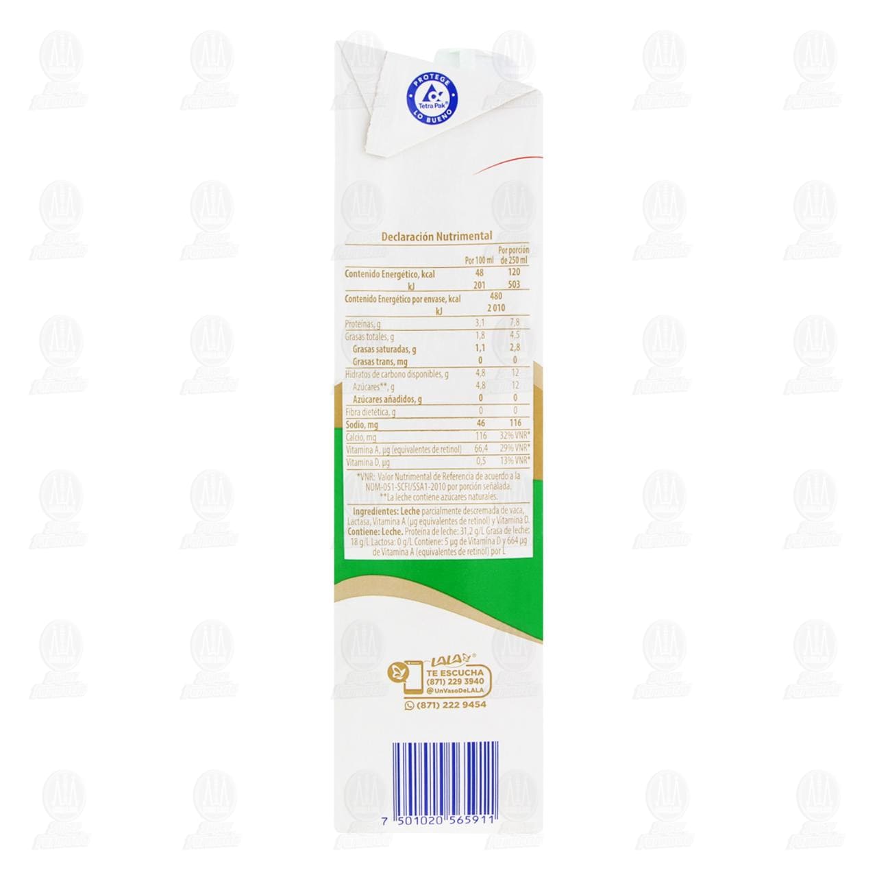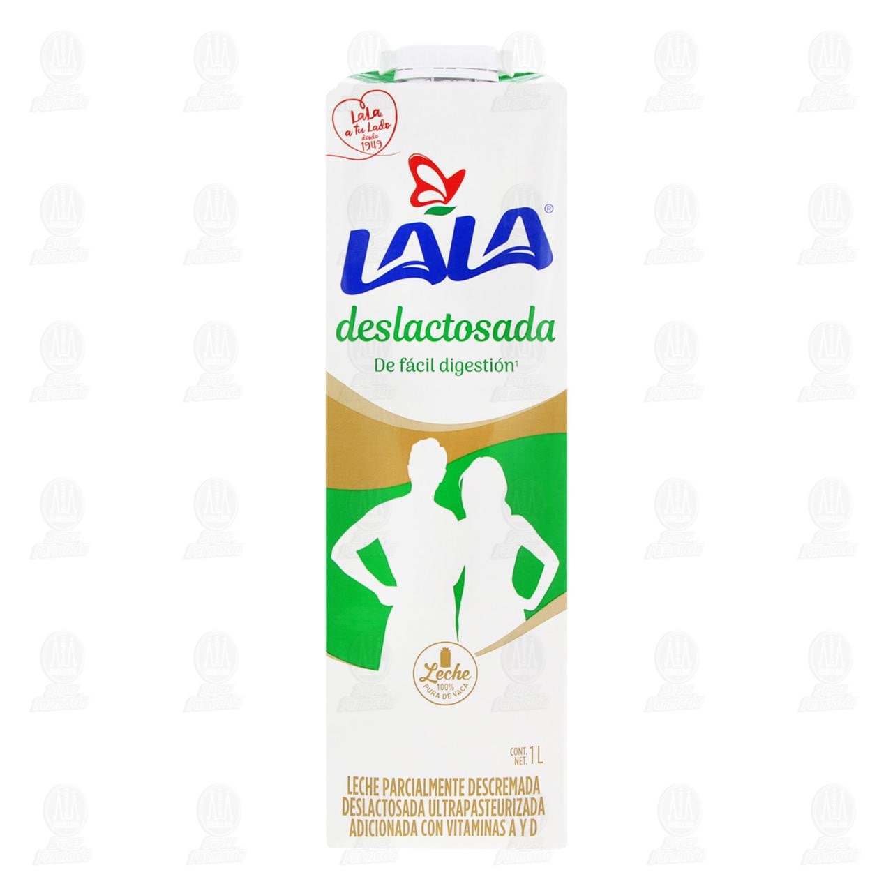 Leche Lala, parcialmente descremada, deslactosada, ultrapasteurizada, adicionada con vitaminas A y D, fácil digestión. Envase con 1 litro.