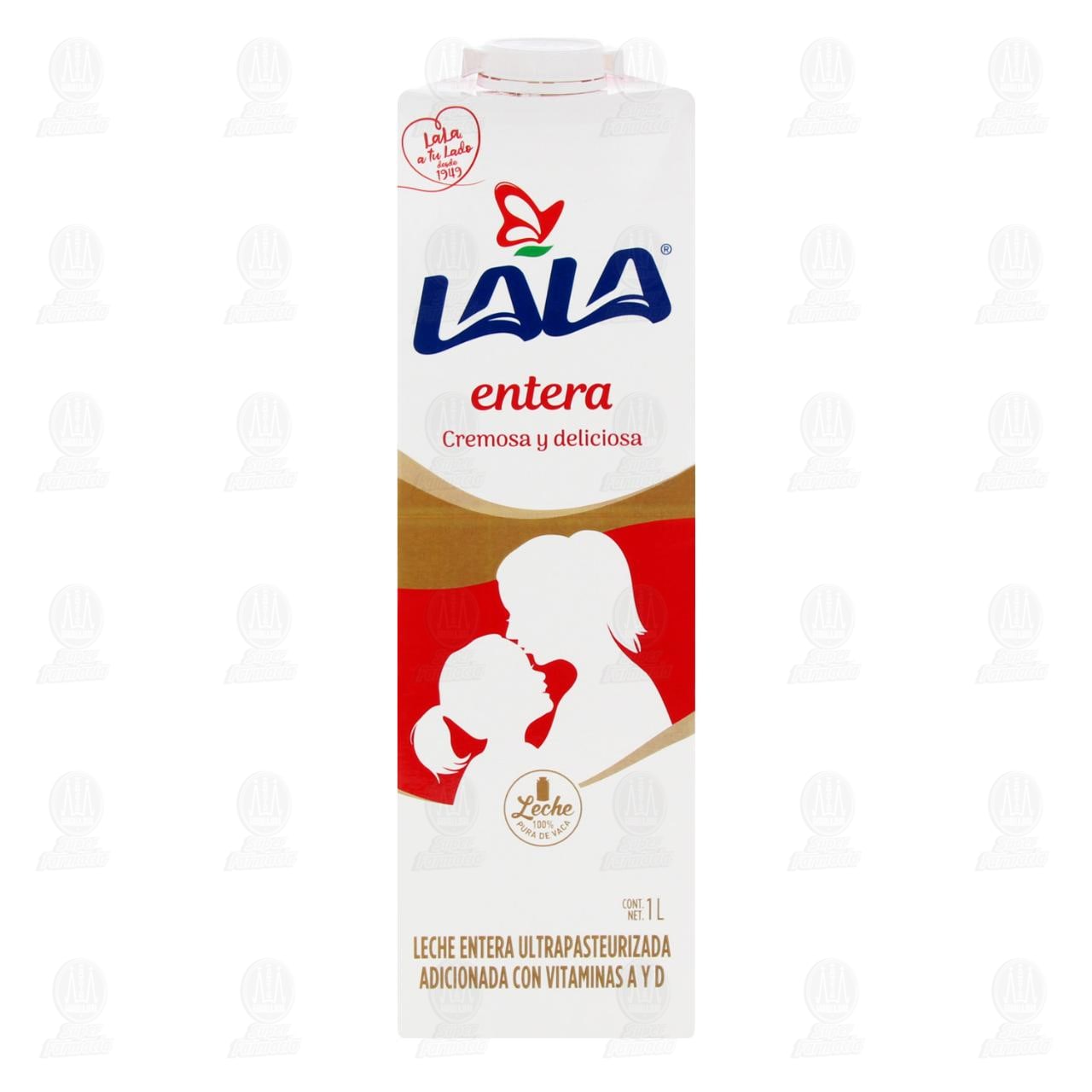 Leche Lala, entera, ultrapasteurizada, adicionada con vitaminas A y D. Envase con 1 litro.