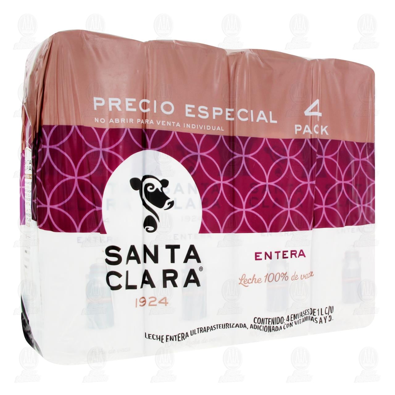 Pack Leche Santa Clara Entera ultrapasteurizada, Adicionada con vitaminas A y D. Contiene 4 envases de 1 litro cada uno.