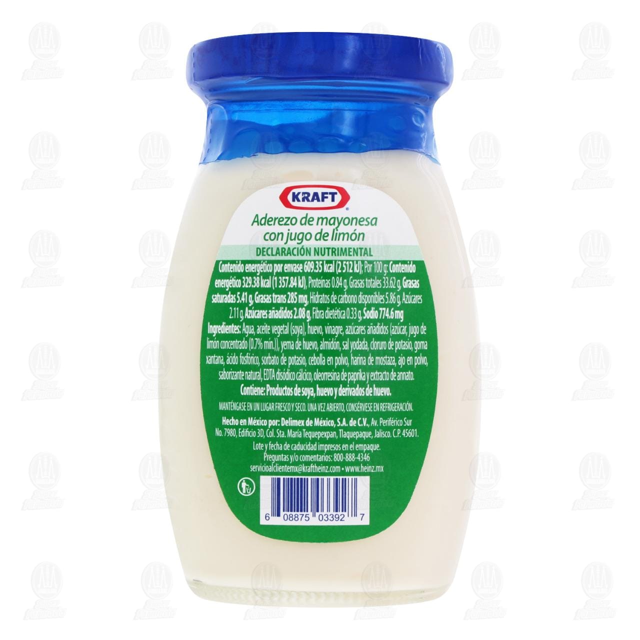 Aderezo Kraft de Mayonesa con Jugo de Limón. Frasco con 185 gramos.