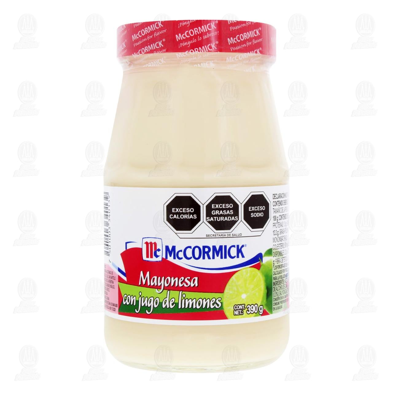 Mayonesa McCormick con jugo de limones. Frasco con 390 gramos.