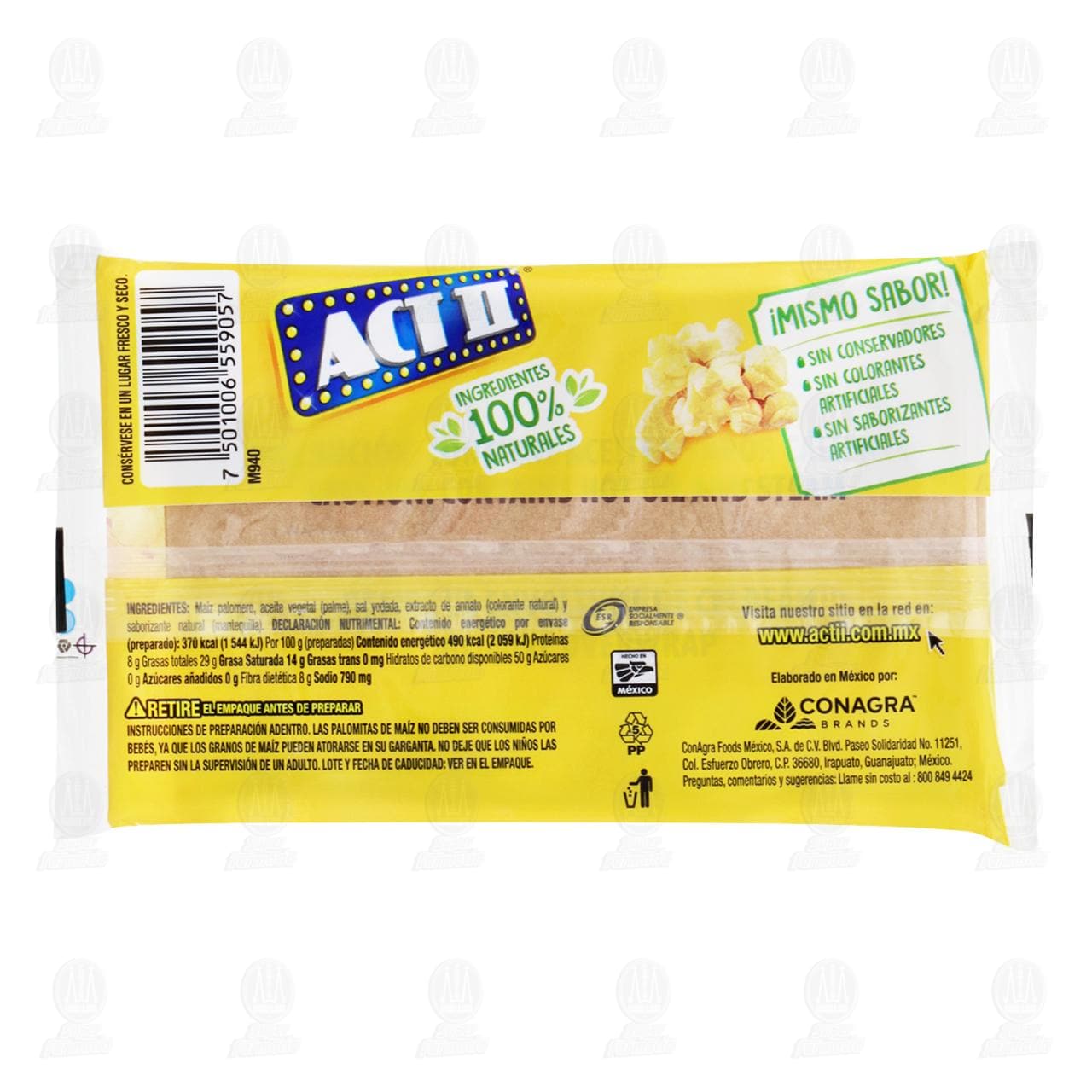 Palomitas ACT II para Microondas Sabor Extra Mantequilla. Paquete con 90 gramos.