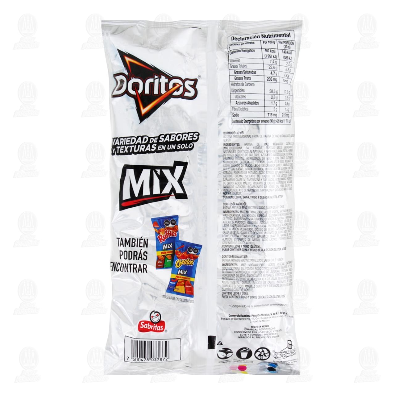 Botana Doritos Mix de Maíz Nixtamalizado y Harina de Maíz, Contiene: Doritos 3D, Doritos Nacho y Doritos Dinamita. Bolsa con 90 gramos.