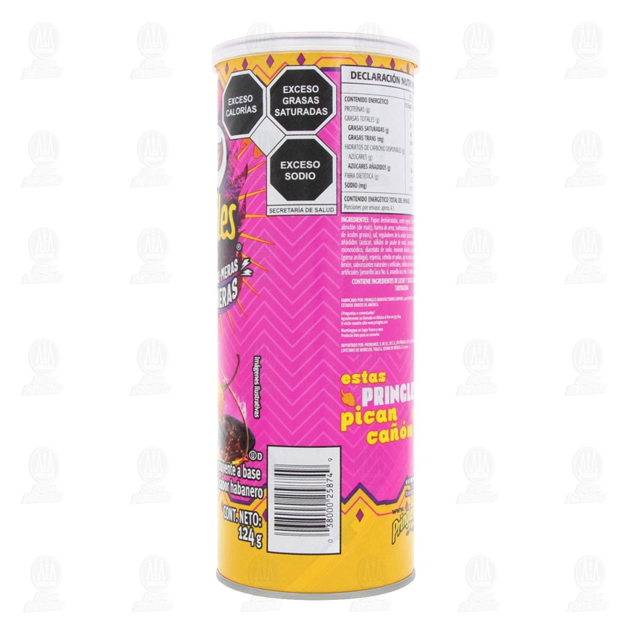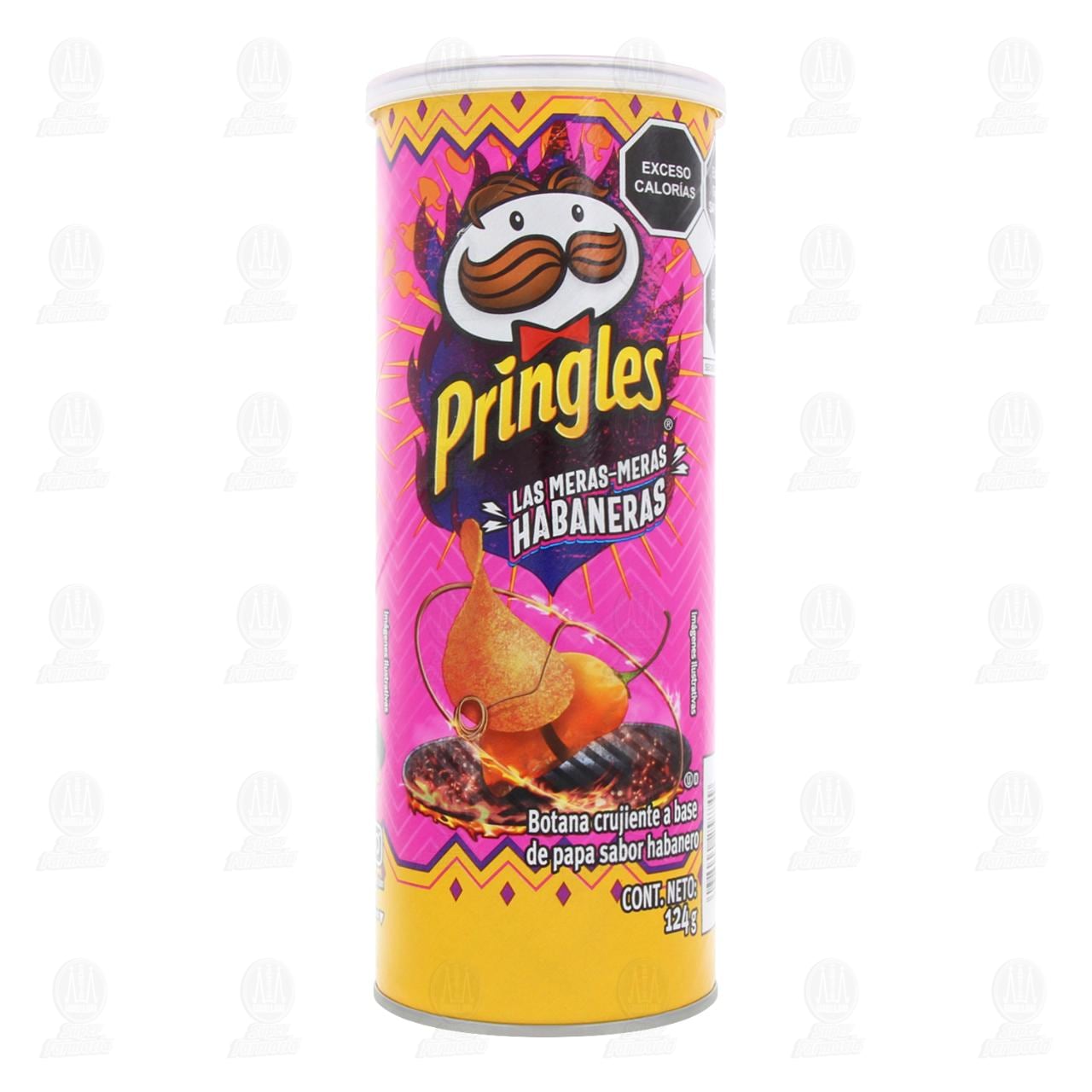 Botana Pringles crujiente a base de papa, sabor habanero. Bote con 124 gramos.