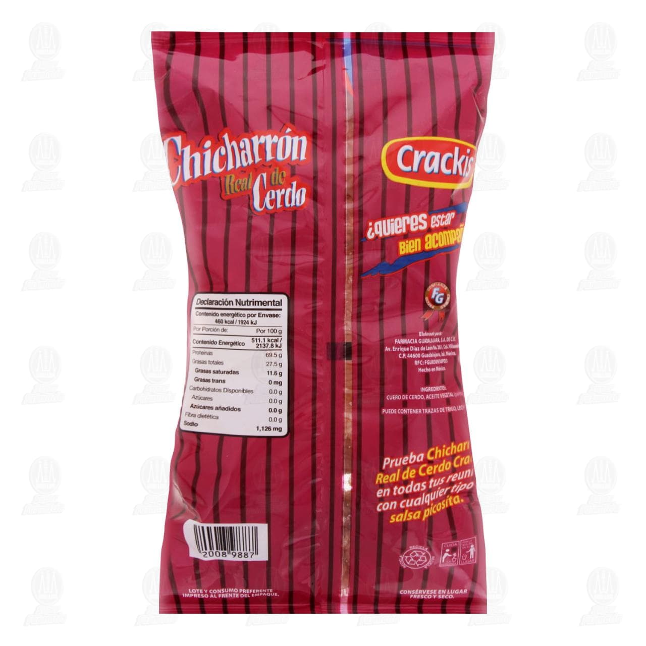 Botana Crackis, chicharrón real de cerdo. Bolsa con 90 gramos.