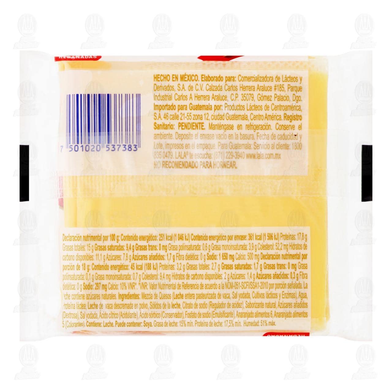 Queso Lala tipo Americano con leche, procesado y pasteurizado. Contiene 144 gramos con 8 rebanadas.