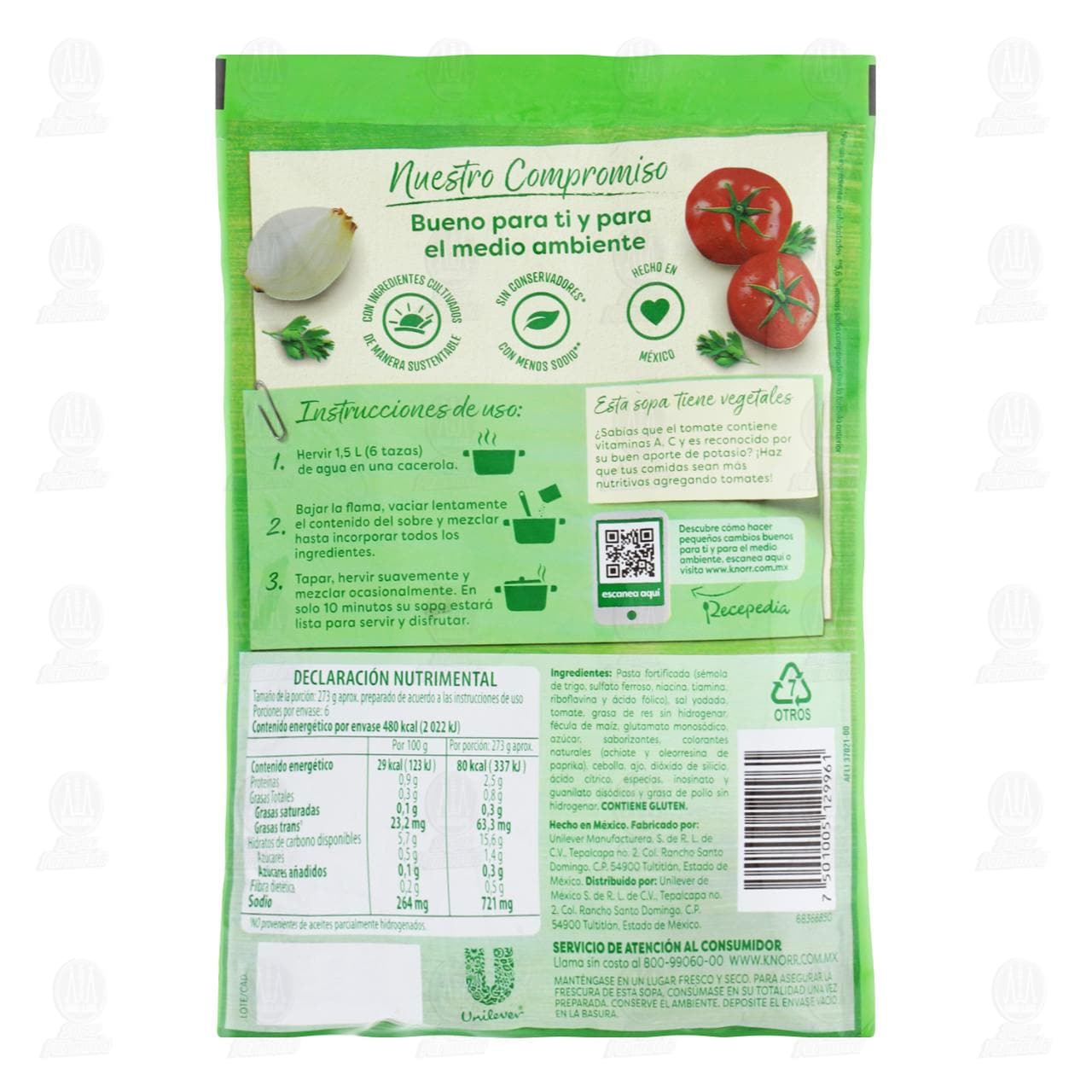 Sopa Preparada Knorr de Fideos, libre de conservadores rinde 6 porciones. Sobre con 143 gramos.